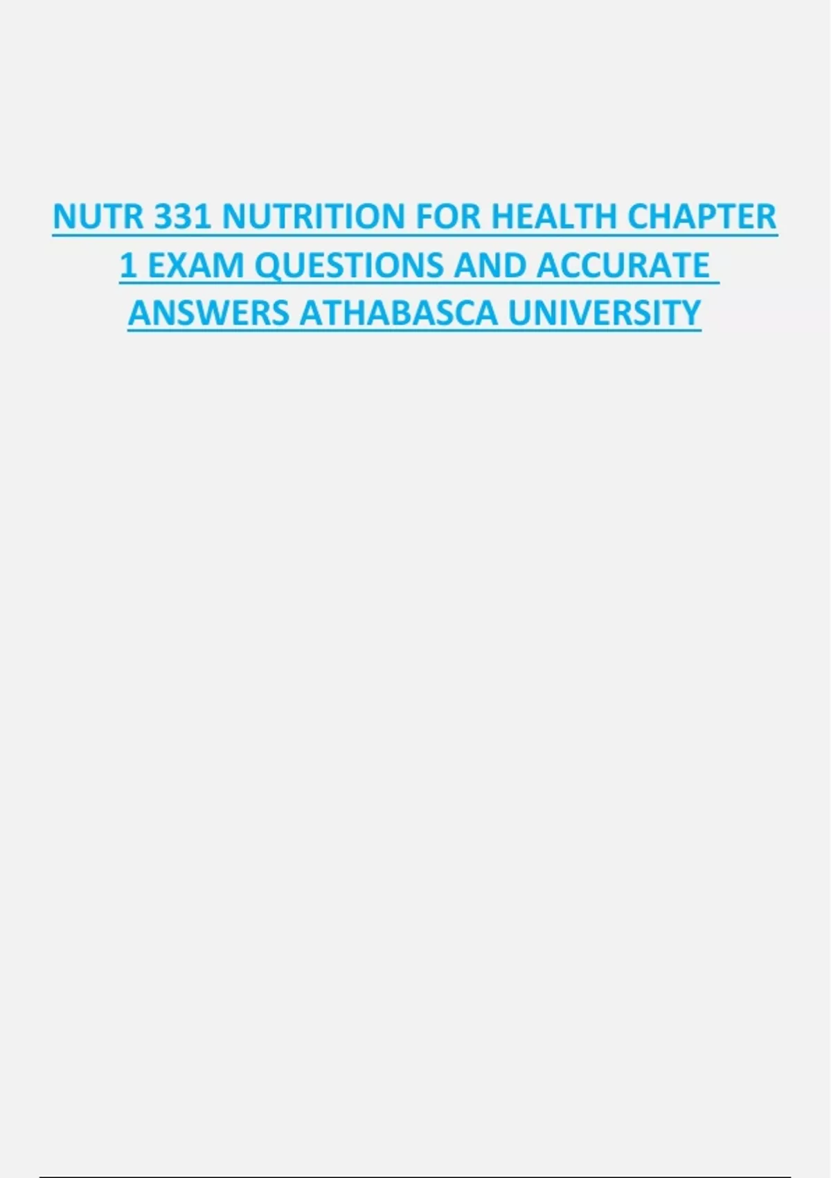 ALL IN ONE NUTR 331 EXAM STUDY GUIDES AND LECTURE NOTES FROM DIFFERENT VERSIONS AND SOURCES BEST FOR EXAM STUDY AND REVISION|ATHABASCA UNIVESITY.