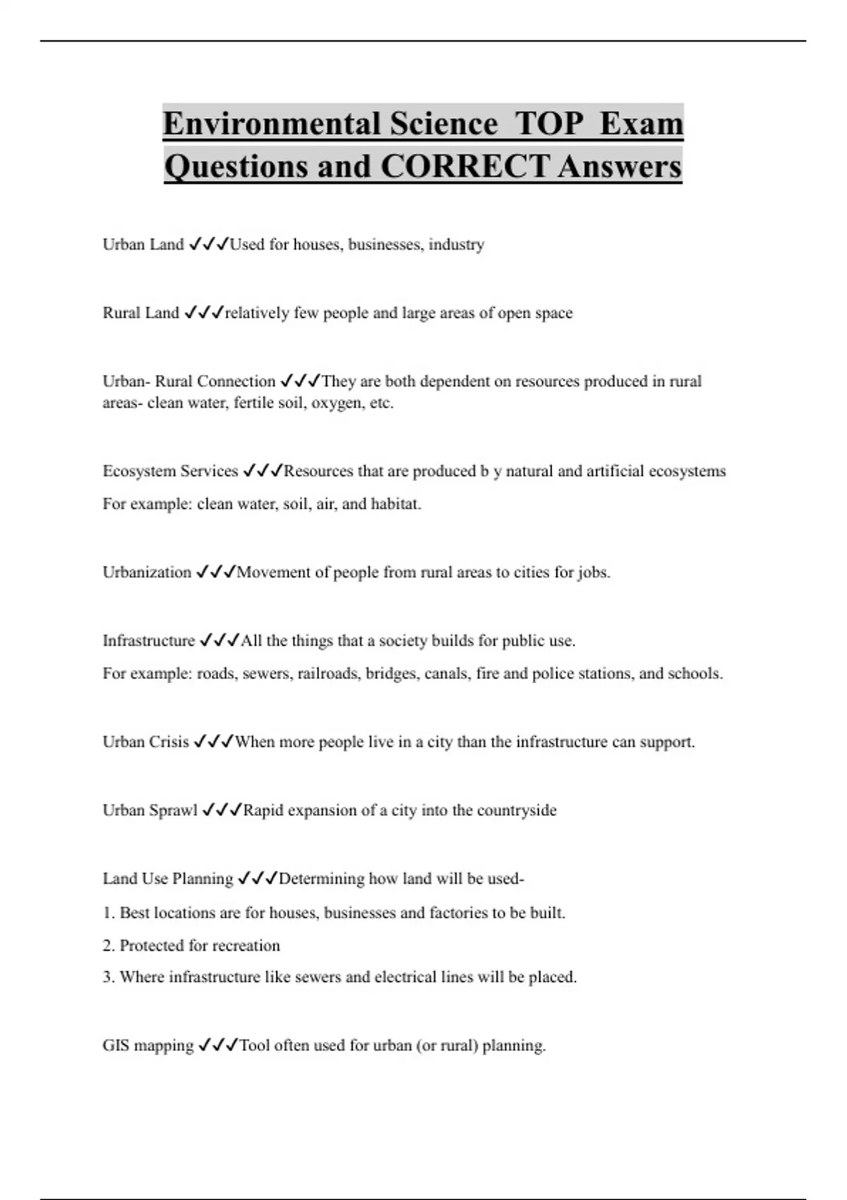 Environmental Science Bundled Exam Questions and CORRECT Answers