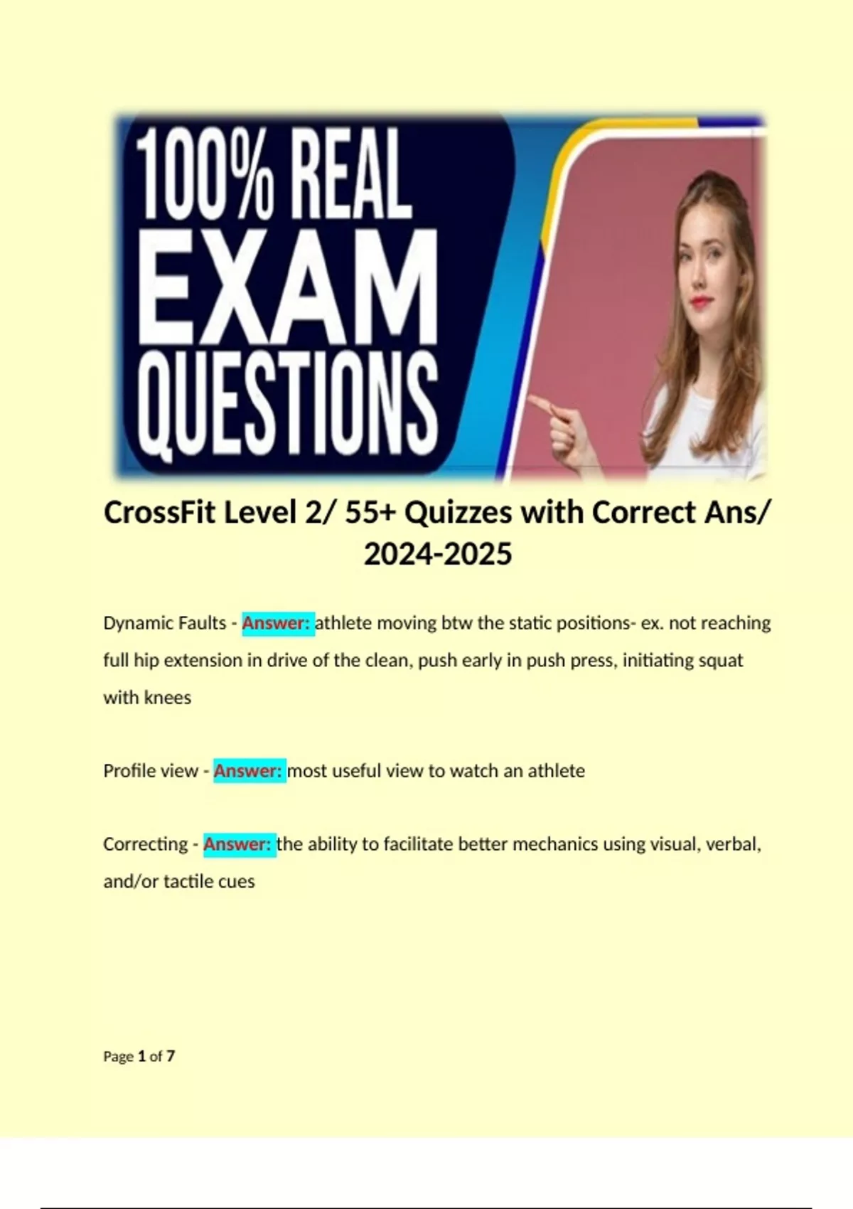 1 Exam (elaborations) CrossFit Level 1 Exam/ 58 Q&A/ 2 Exam (elaborations) CrossFit Level 1/ 168 Questions with Definitive Solutions Newest. 3 Exam (elaborations) CrossFit Level 1/ 2 & 3 CrossFit Level 1/ 168 Questions with Definitive Solutions Newest. 4 Exam (elaborations) CrossFit Level 2 (CF L2) 83 Q&A/ . 5 Exam (elaborati