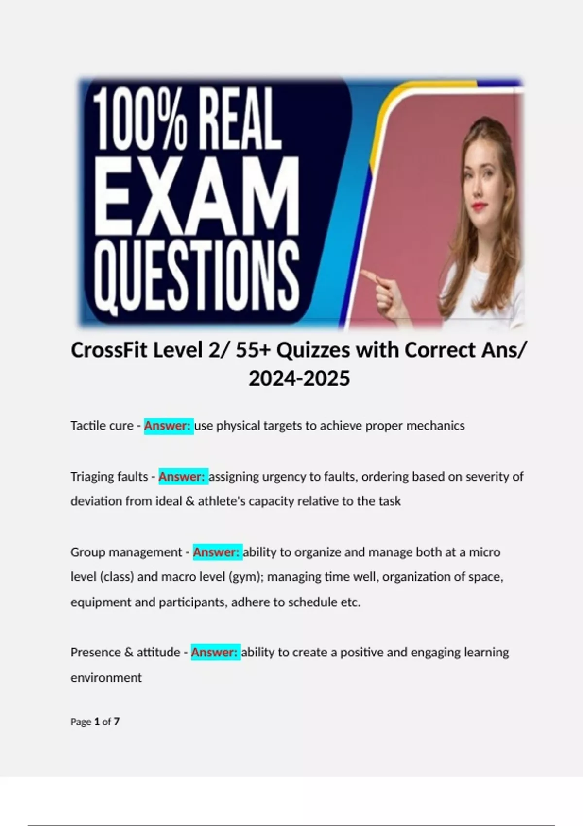 1 Exam (elaborations) CrossFit L1 Certification/ 179 Qs with Certified Ans/ . 2 Exam (elaborations) CrossFit Level 1 Exam/ 58 Q&A/ . 3 Exam (elaborations) CrossFit Level 1/ 165+ Questions with Definitive Solutions Newest. 4 Exam (elaborations) CrossFit Level 1 Trainer Test/ 139 Qs & Ans/ . 5 Exam (elaborations) CrossF