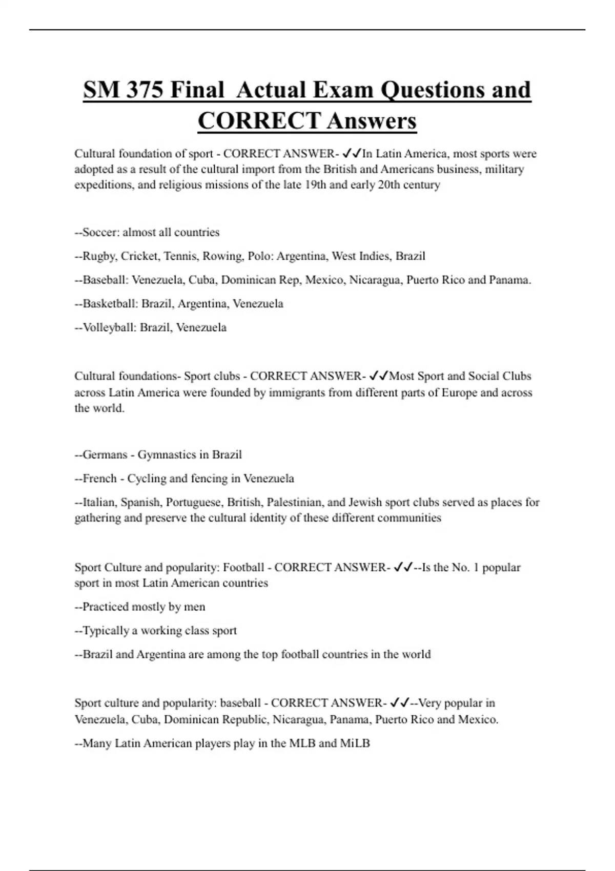 SM 375 Bundled Exam Questions and CORRECT Answers