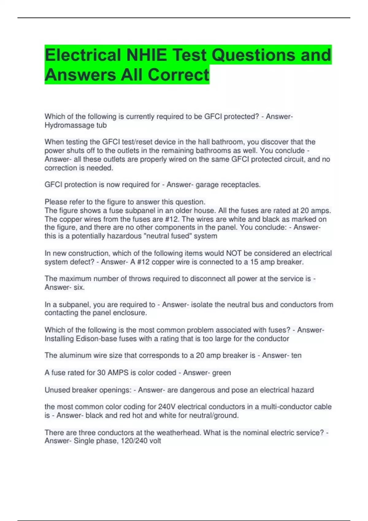 NHIE Electrical Exam Questions with 100% Correct Answers Updated 2 Exam (elaborations) NHIE Electrical Practice Test Questions and Answers All Correct 3 Exam (elaborations) NHIE Electrical Study Session 19 Questions with Correct Answers 4 Exam (elaborations) NHIE Electrical Prep Exam Questions and Answers All Correct 5 Exam (elaborati