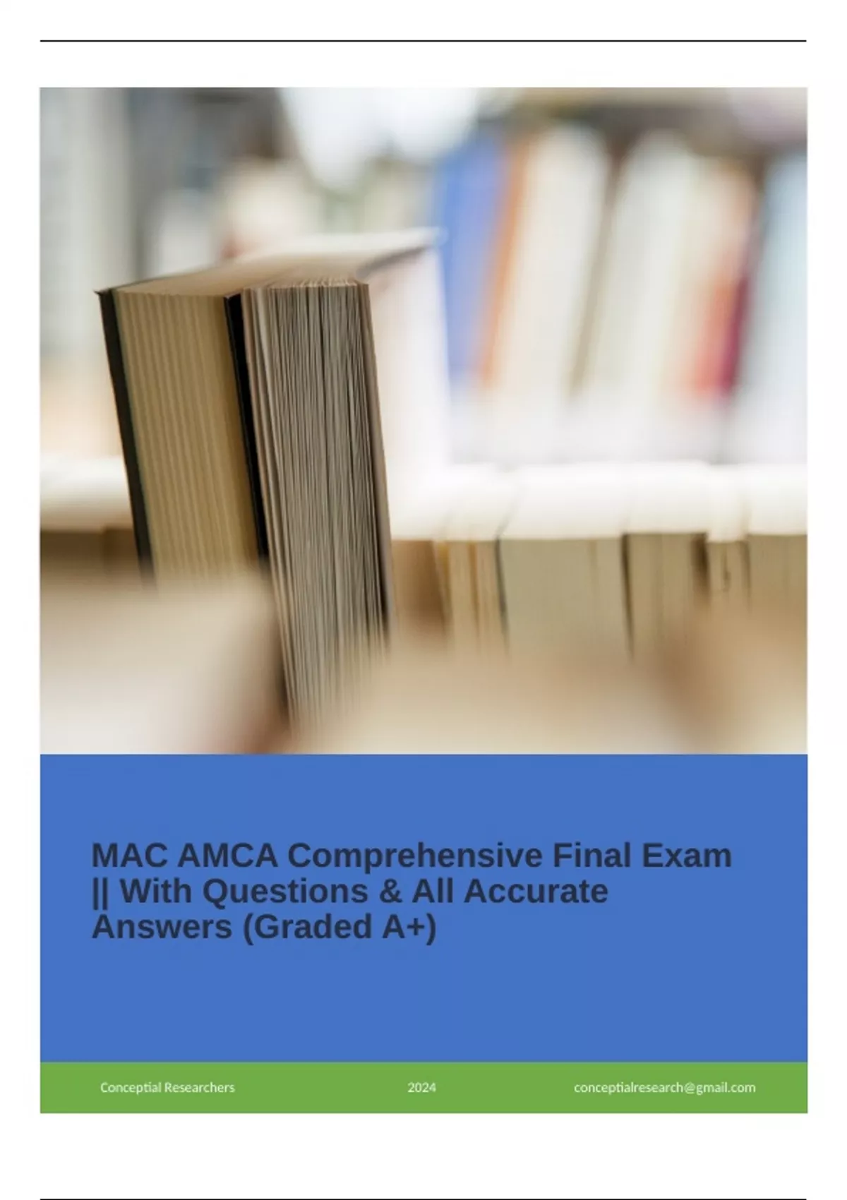 MCA Medical Assistant Certification Exam Bank|| With Complete Questions & Solutions (Graded A+) MCA Medical Assistant Certification Exam Bank|| With Complete Questions & Solutions (Graded A+)