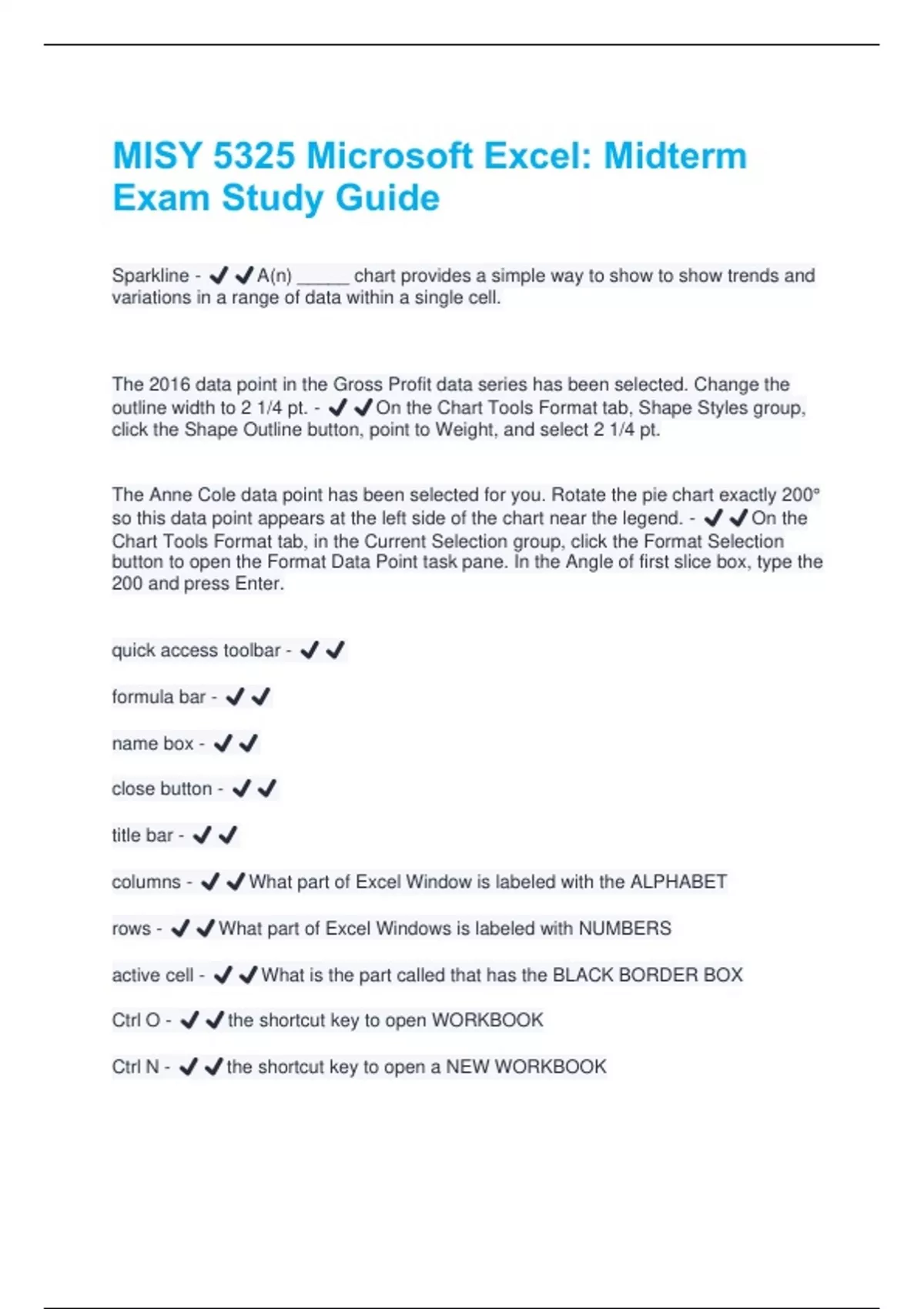MISY 5325 MS Excel Midterm Exam Study Guide Questions and Answers Latest Update 100% Correct.