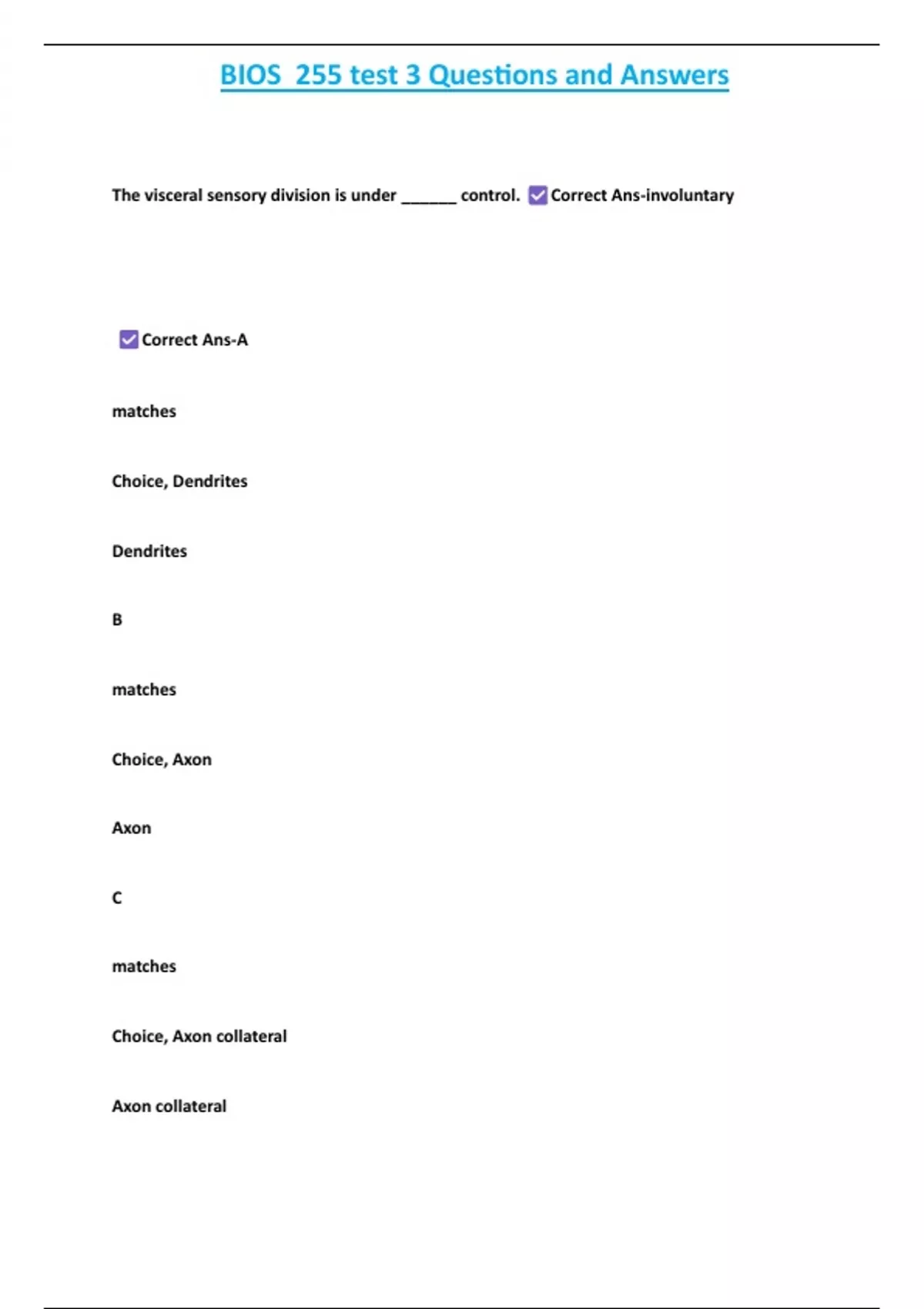 BIOS 255 test 3 Questions and Answers 2 Exam (elaborations) BIOS 255: Test 2 Questions and Answers 3 Exam (elaborations) BIO 255 Test 1-Questions and Answers 100% Solved