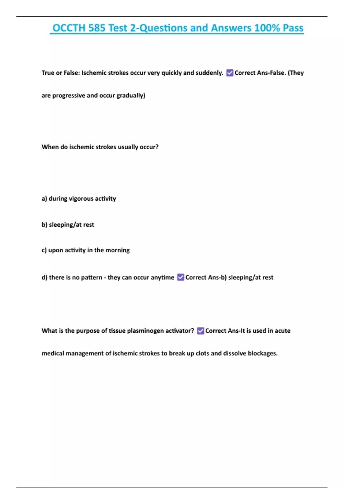 OCCTH 585 Test 2-Questions and Answers 100% Pass 2 Exam (elaborations) OCCTH 585 - Alzheimer s Disease Questions and Answers 100% Solved 3 Exam (elaborations) OCCTH 585 Test 1|Neurology-Questions & Answers 4 Exam (elaborations) OCCTH 585 – Stroke Questions and Answers 100% Pass 5 Exam (elaborations) OCCTH 585 Neuro Questions and Answers 100% Co