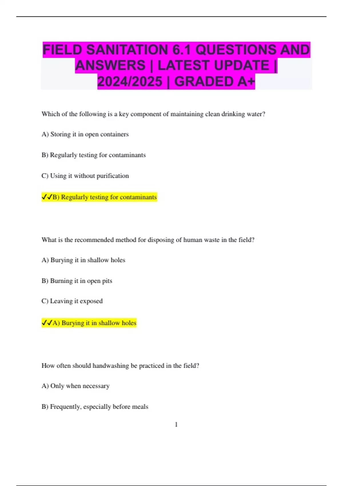 Field Sanitation Bundled Exams Questions and Answers Latest Versions (2024/2025) (Complete and Accurate)