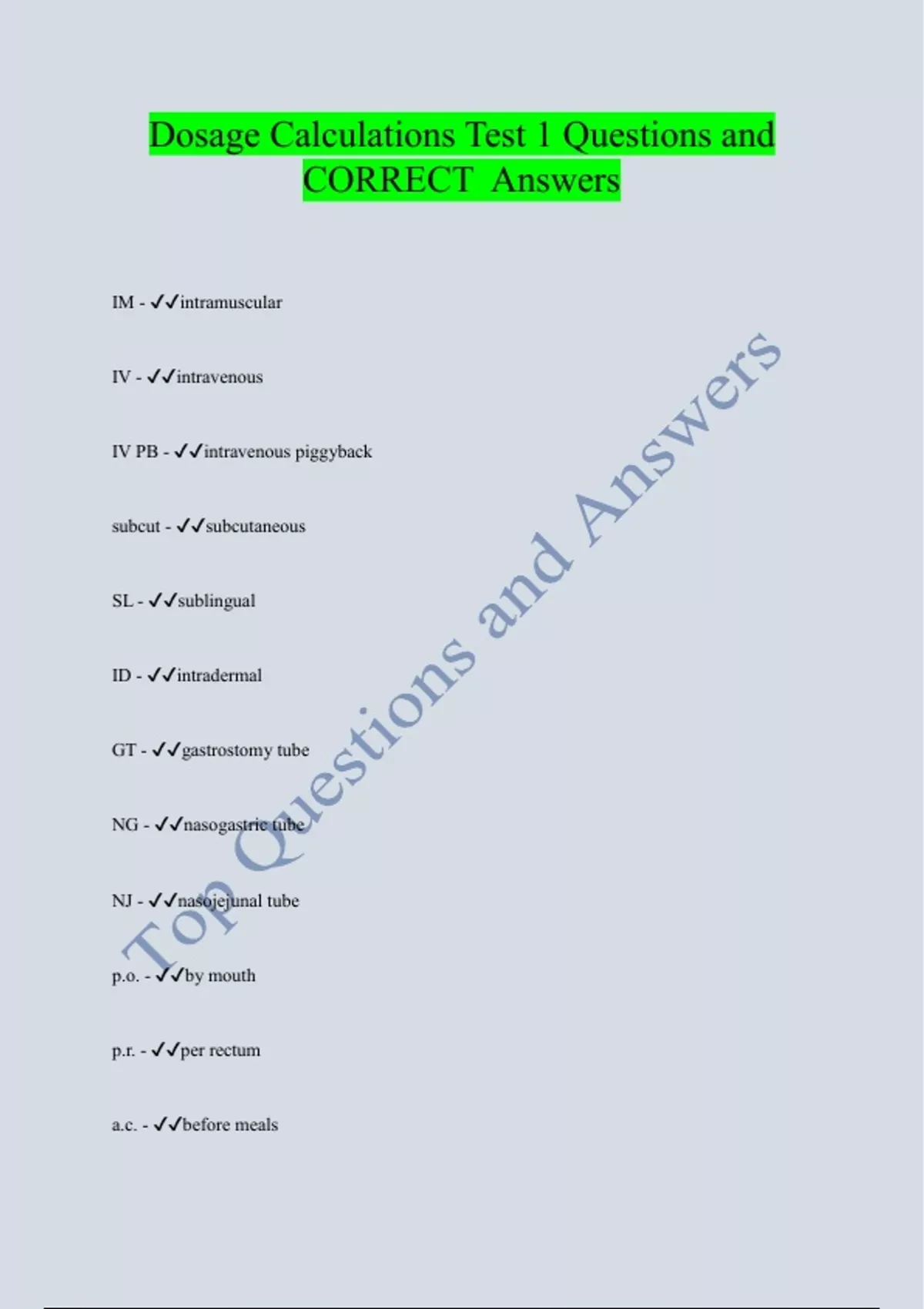 Dosage Calculation Bundled Exam Questions and CORRECT Answers