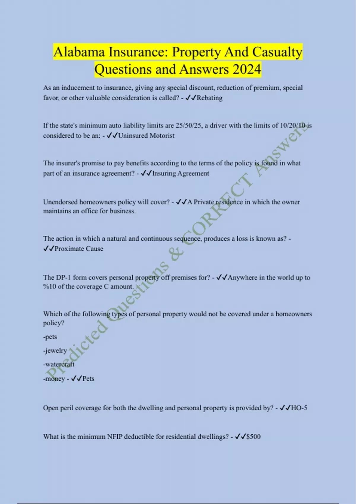 Property and Casualty Bundled Exam Questions and CORRECT Answers