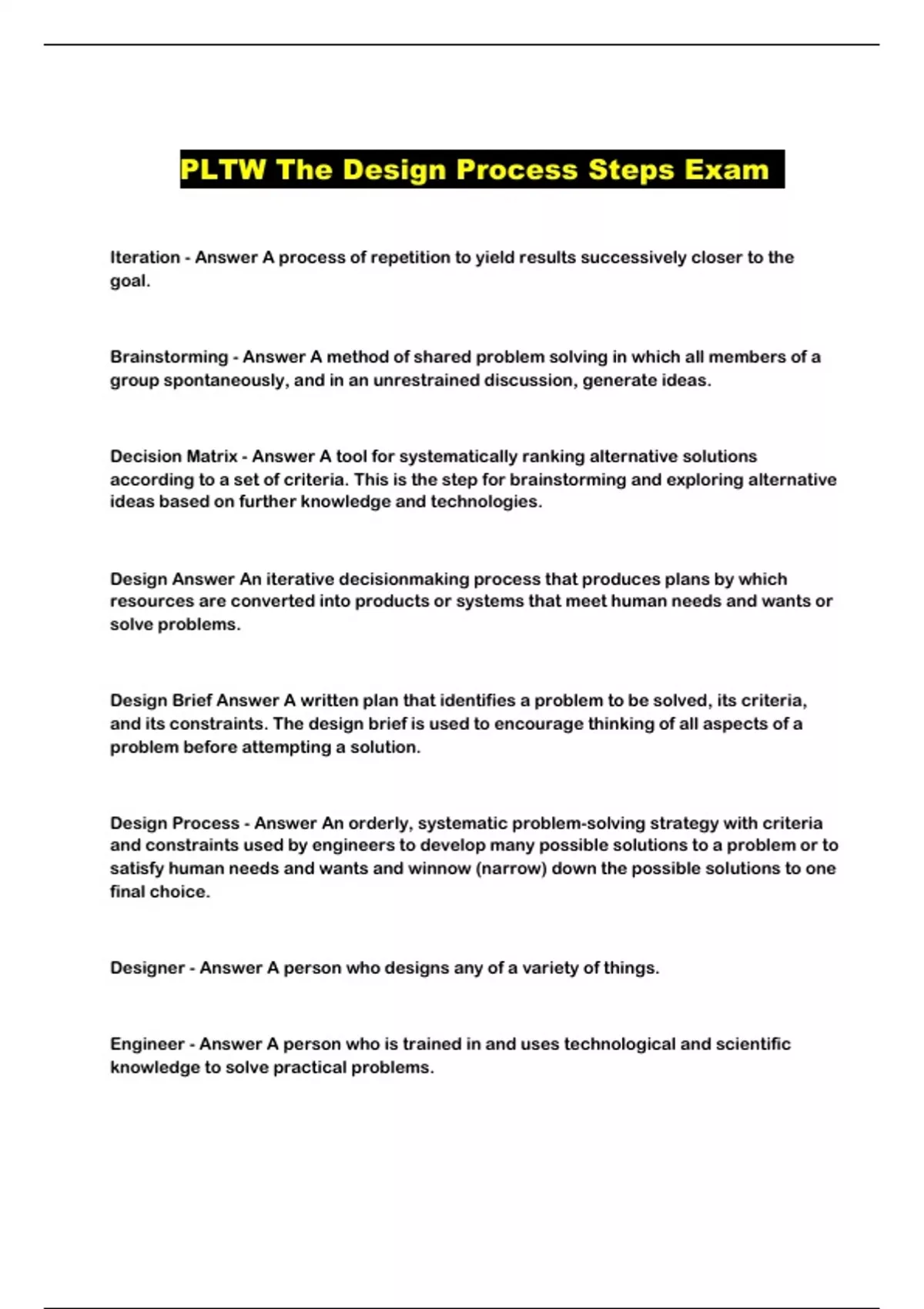 PLTW The Design Process Steps Exam