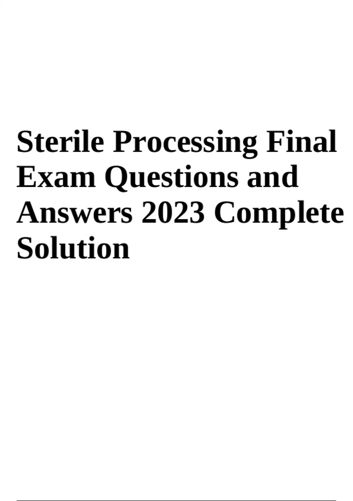 Sterile Processing Technician Exam Questions With Answers, Sterile Processing CBSPD Test Questions With Answers Latest Updated 2024, Sterile Processing Final Exam Questions and Answers & Sterile Processing Practice Final Exam Questions With Answers Latest