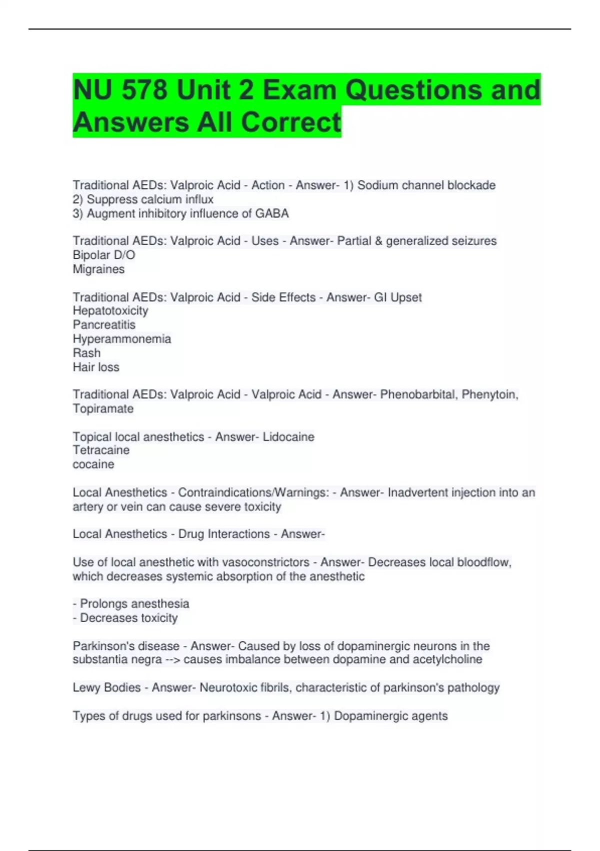 NU 578 Unit 2 Exam Questions and Answers All Correct 2 Exam (elaborations) NU 578 Unit 4 Exam with All Correct Answers (Newest Version) 3 Exam (elaborations) NU 578 Unit 2 Drugs Exam Questions and Answers All Correct 4 Exam (elaborations) NU 578 Spring 2017 Unit 4 Exam Questions and Correct Answers (Already Graded A+) 5 Exam (elaborations) NU 5