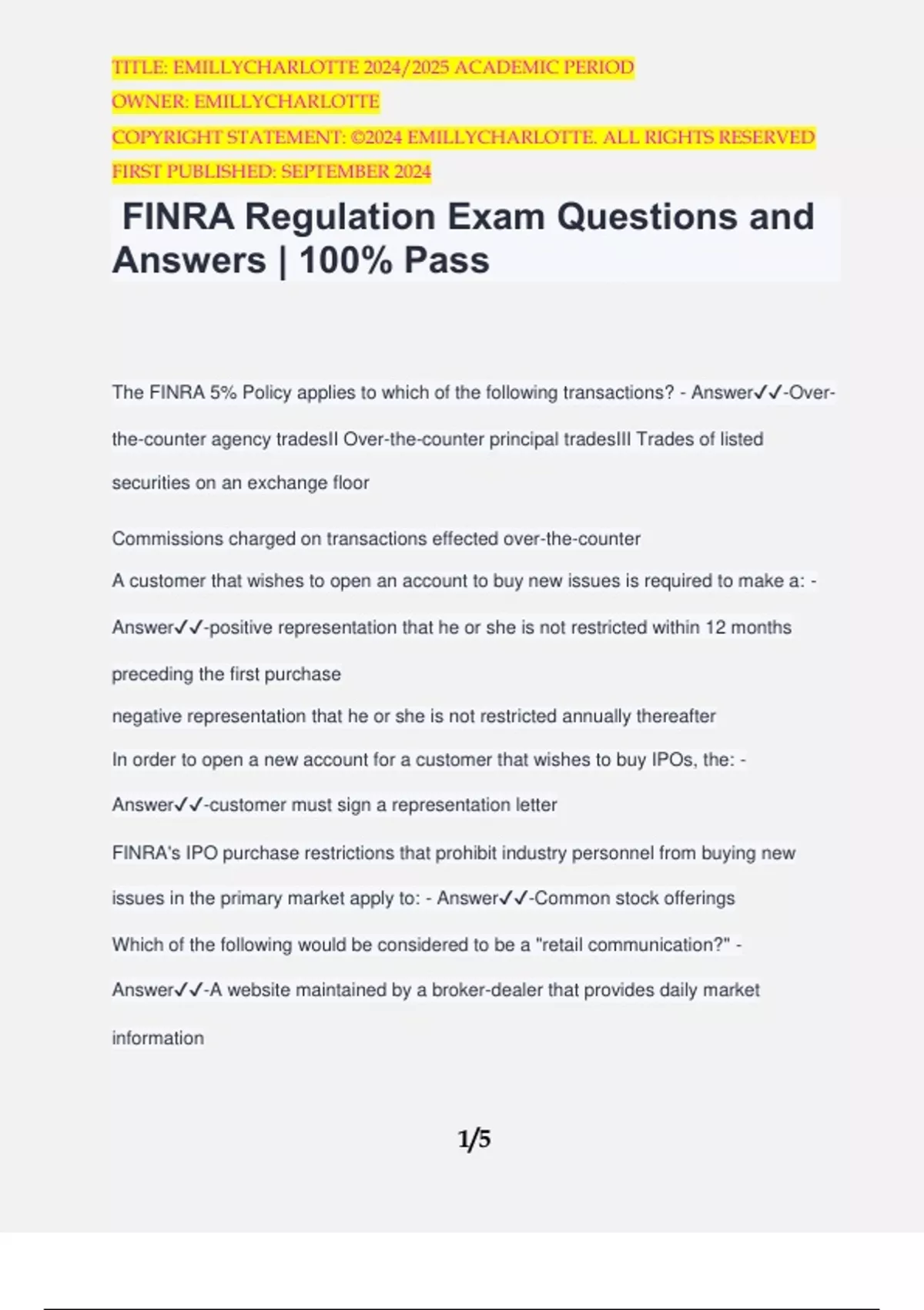 FINRA 75Q EXAM QUESTIONS AND ANSWERS | 100% PASS