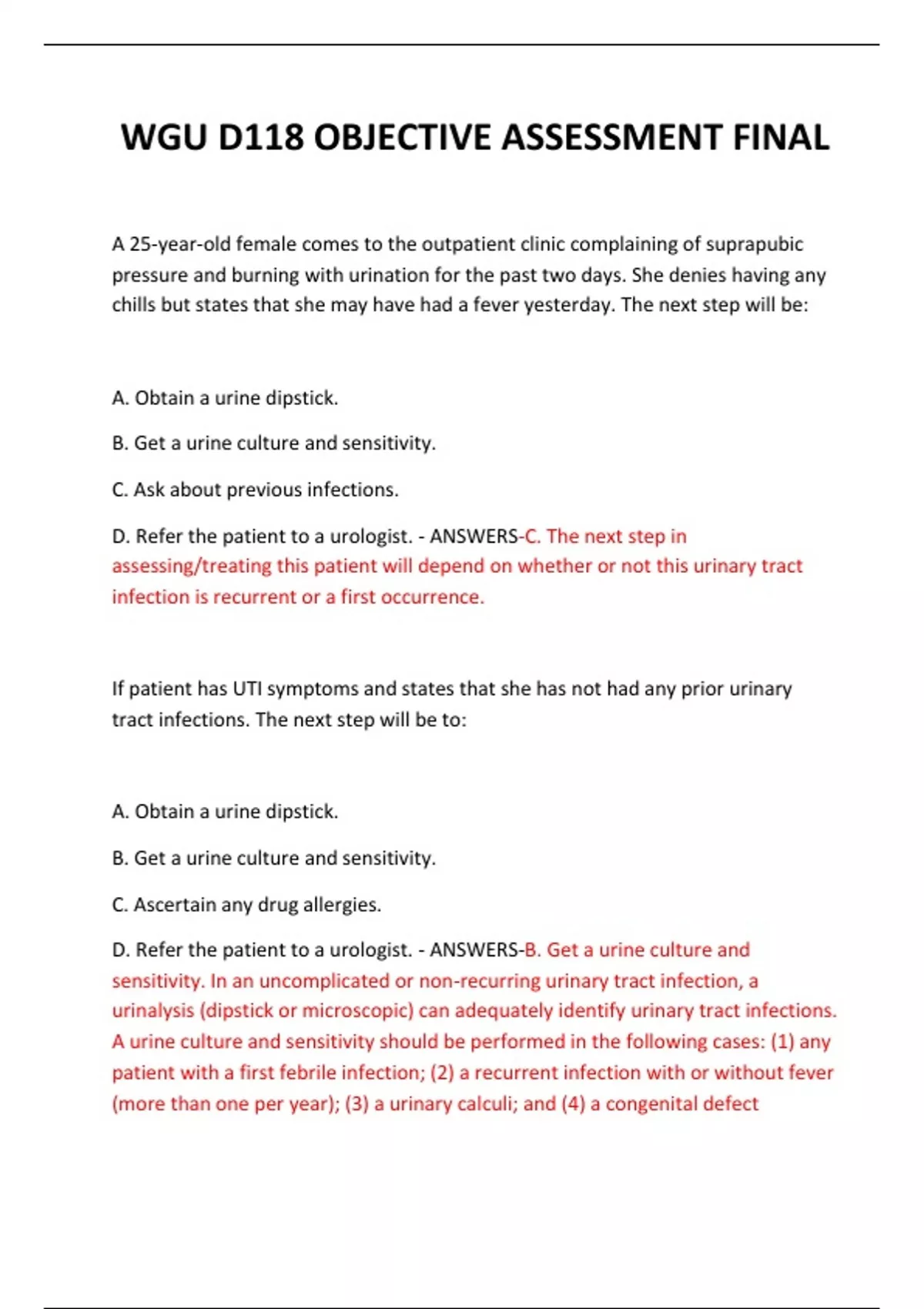 WGU D118 EXAM PACKAGE DEAL WGU D118 EXAM PACKAGE DEAL