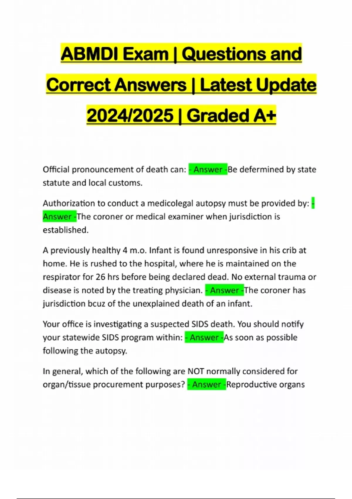 ABMDI BUNDLED EXAMS:::: QUESTIONS AND CORRECT ANSWERS | LATEST UPDATE 2024/2025. Actual tests, practice tests, study guides