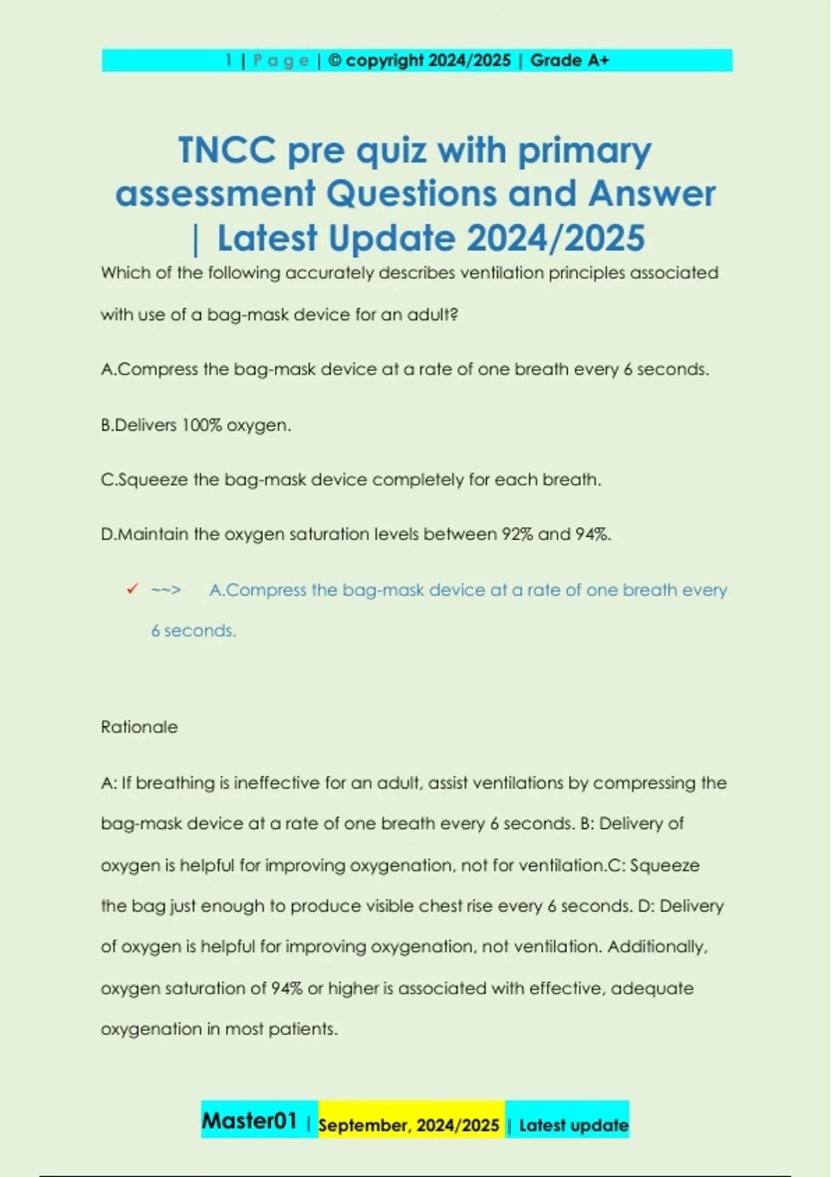 TNCC Exam Questions and Answer | Latest Update 2024/2025
