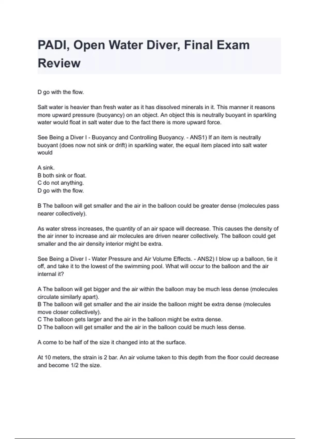 PADI OPEN WATER Final Exam with 100% Correct Answers 2024/2025 ( ALL BUNDLED HERE!!!)