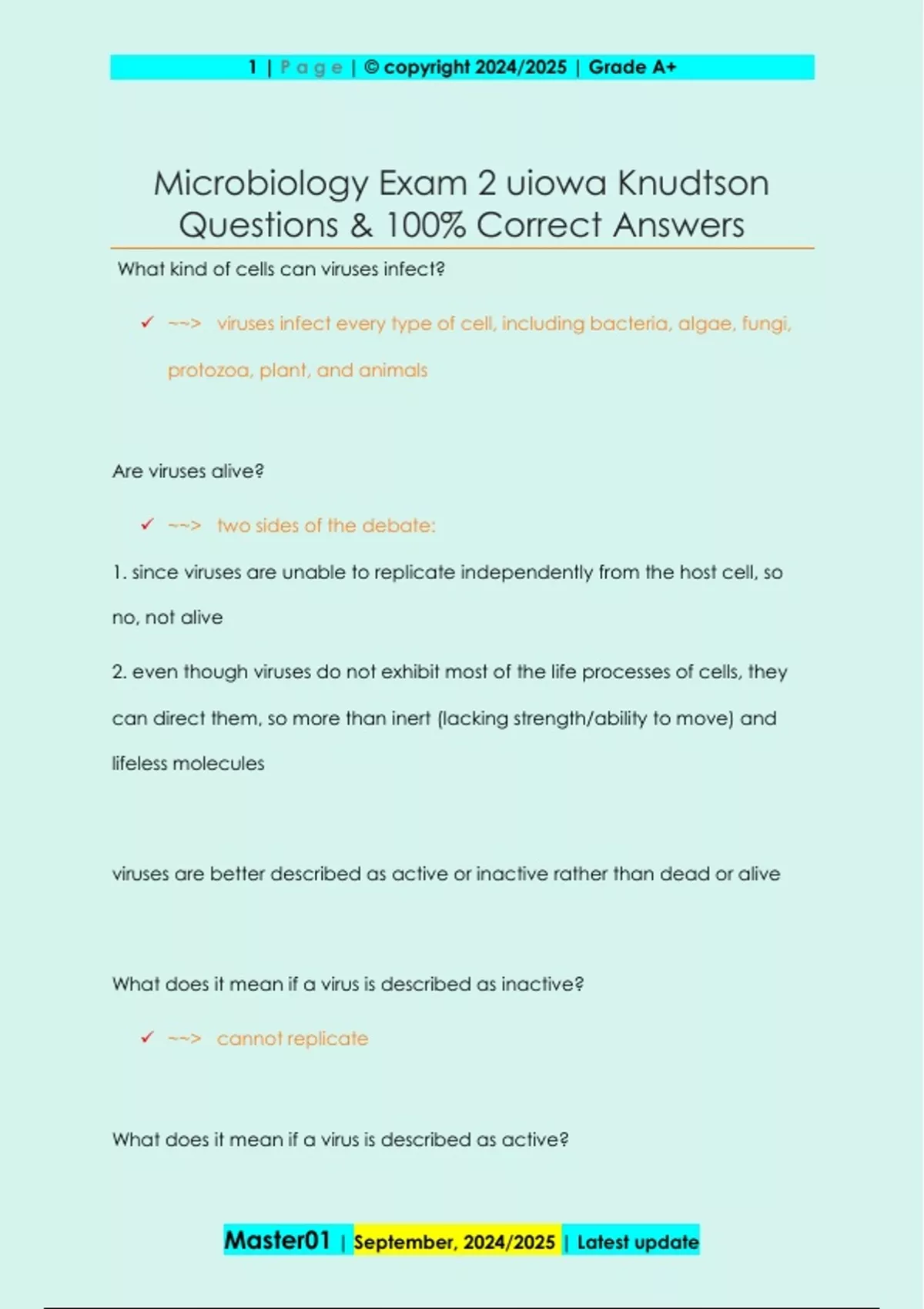 UIOWA Microbiology Exams Questions & 100% Correct Answers