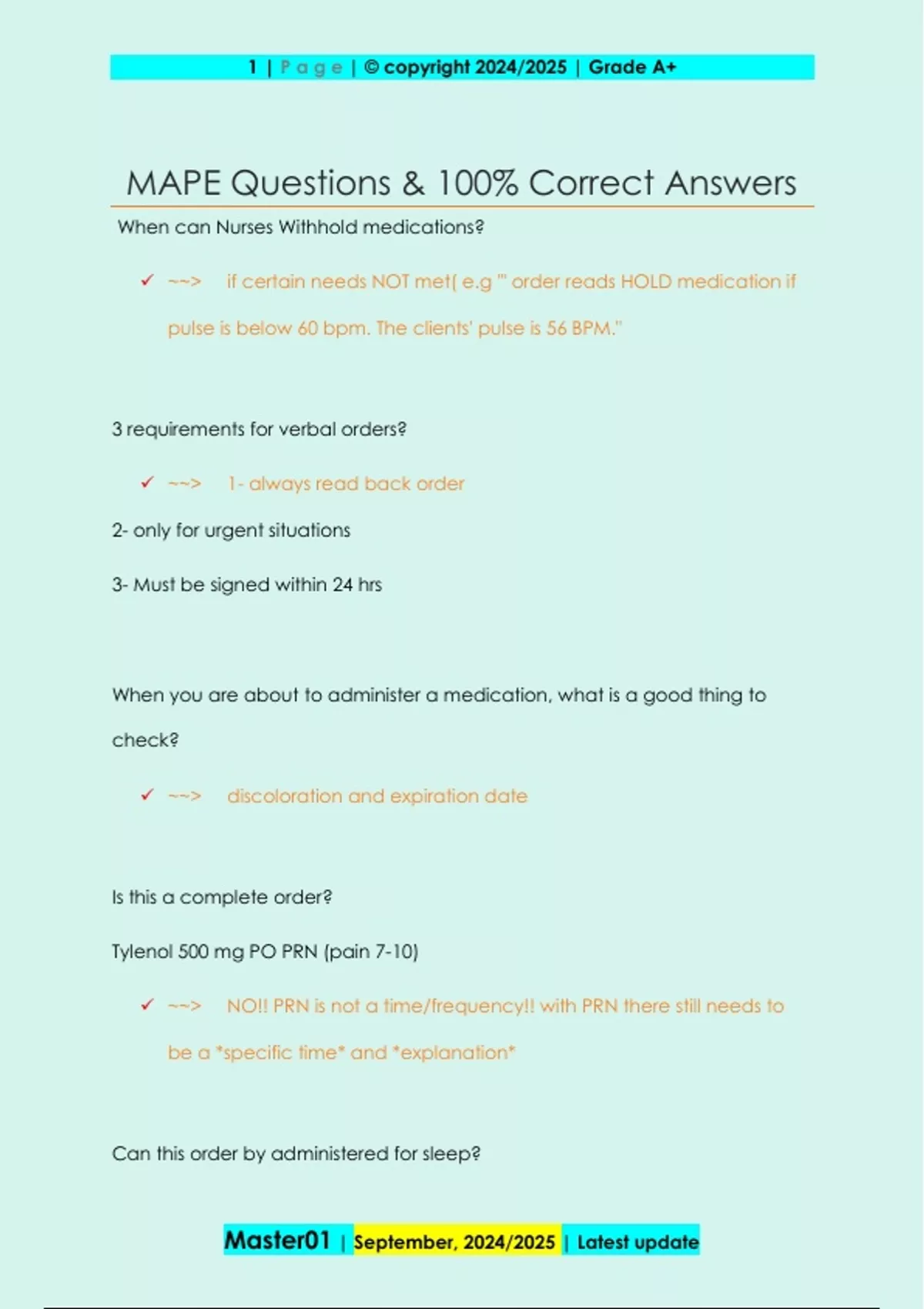 MAPE Questions & 100% Correct Answers