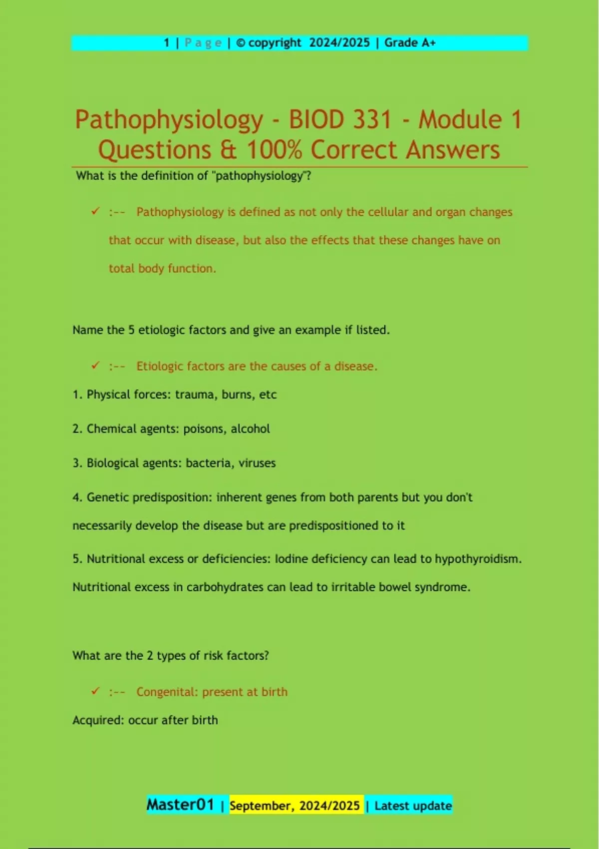Pathophysiology - BIOD 331 - Module 1 Questions & 100% Correct Answers