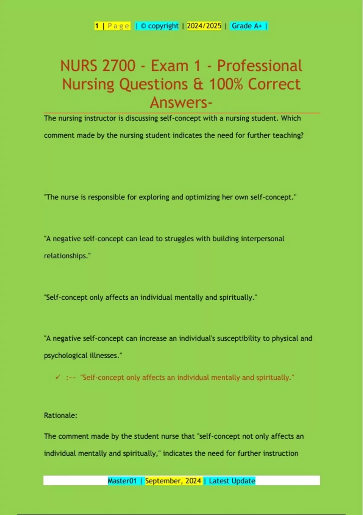 NURS 2700 - Professional Nursing Questions & 100% Correct Answers