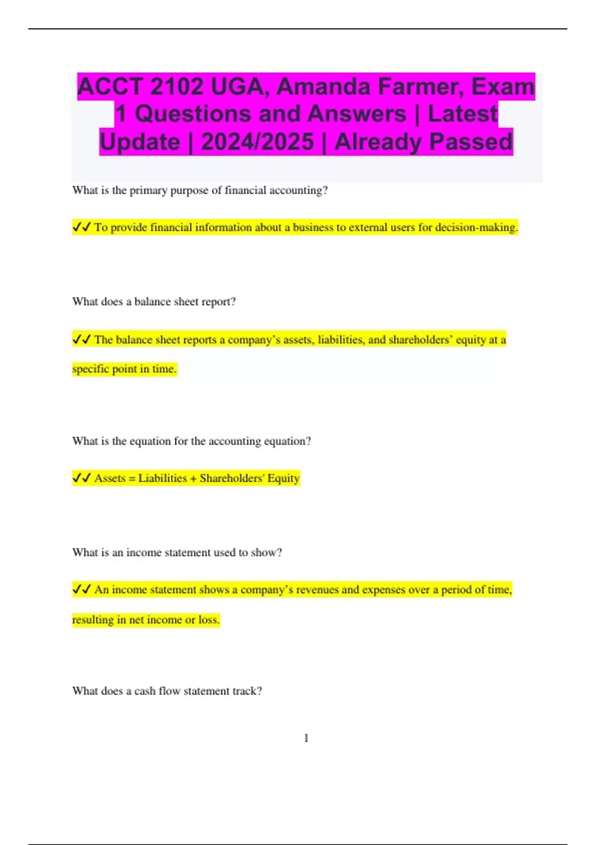 ACCT 2102 UGA Bundled Exams Questions and Answers Latest Versions (2024/2025) (Complete and Accurate)