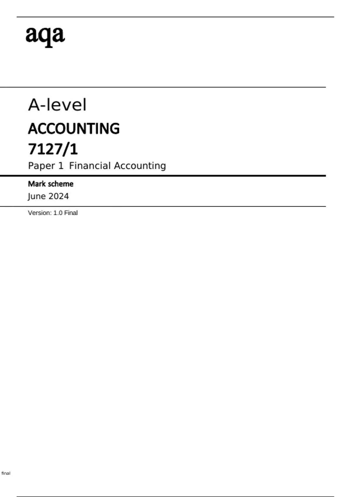 aqa A-level ACCOUNTING (7127/1)Paper 1 Financial Accounting Mark Scheme and Question Paper 2024