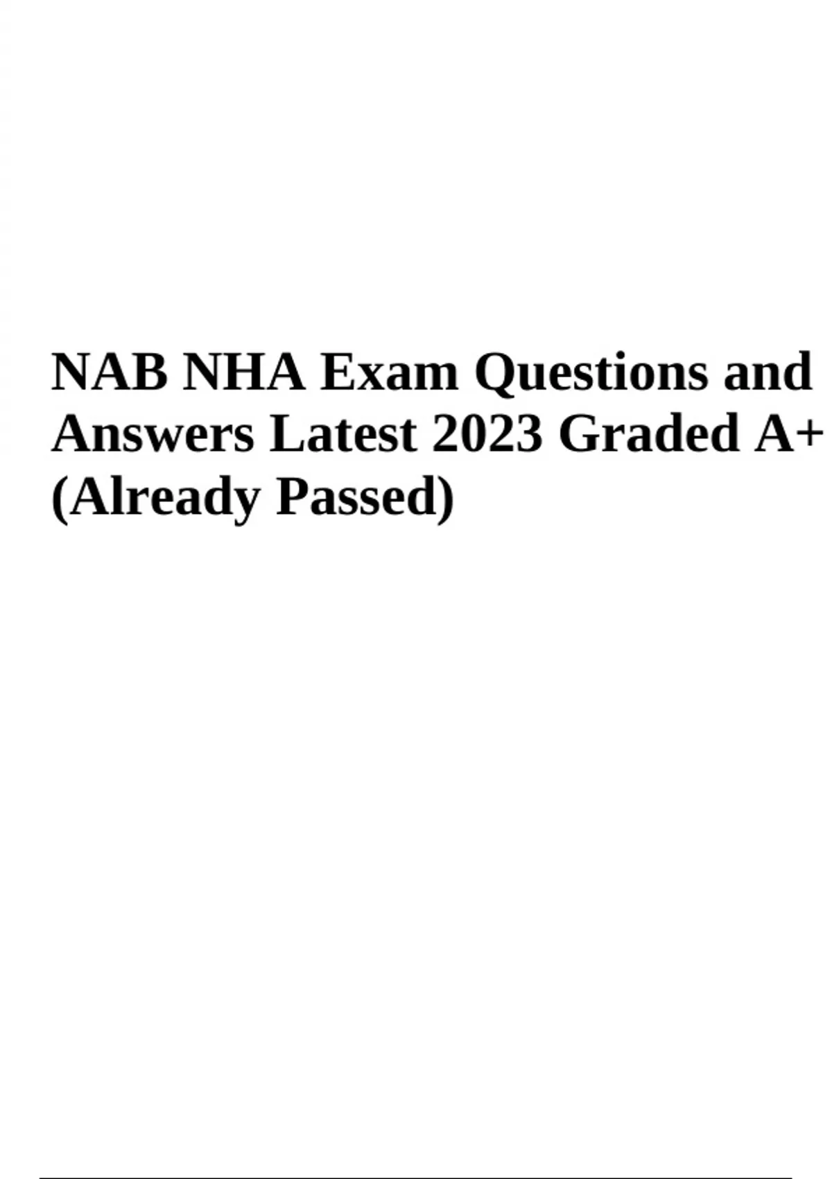 NAB NHA Final Exam Questions with Correct Answers Latest, NAB NHA Exam Question Bank - Questions with Answers Latest Update, NAB NHA Leadership and Management Final Exam Questions and Answers, NAB NHA FINAL EXAM QUESTIONS WITH CORRECT ANSWERS, NAB NHA Final Practice Exam Questions and Answers & NAB NHA Exam Final Questions and Answers .