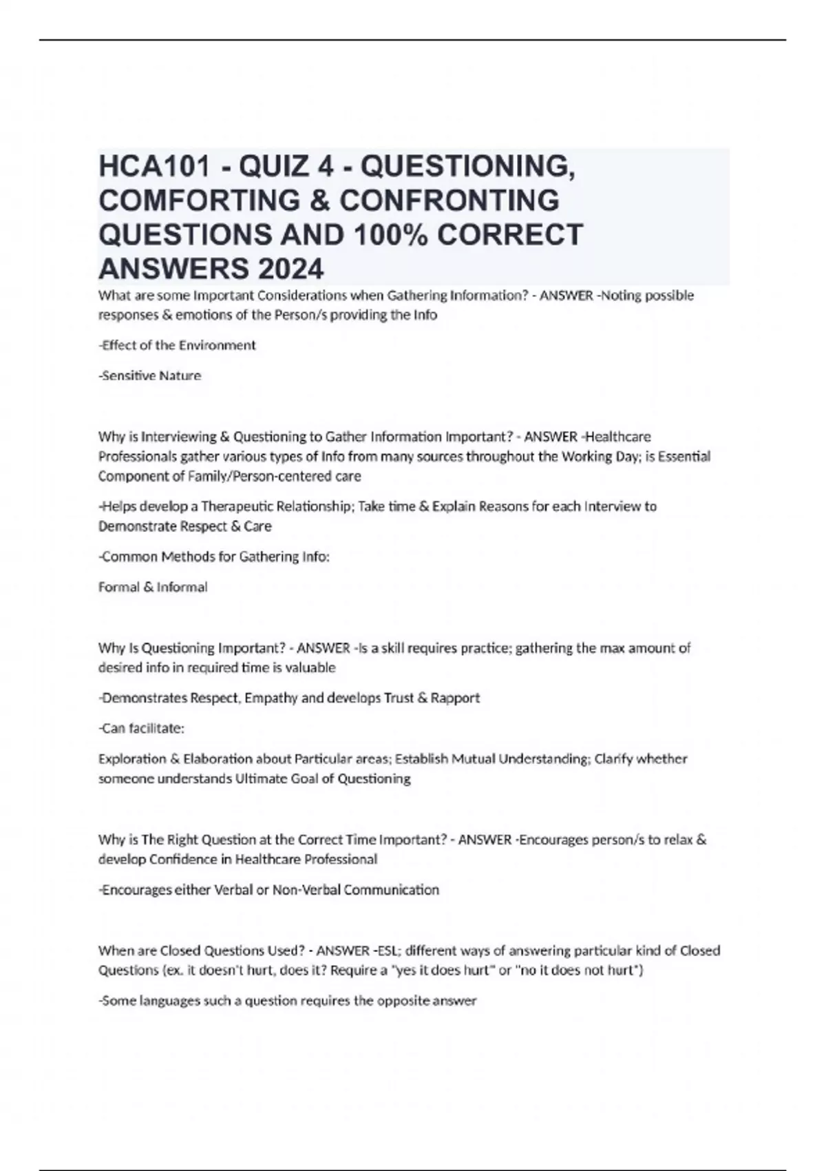 HCA 101 PACKAGE DEAL QUESTIONS AND 100% CORRECT ANSWERS WITH VERIFIED SOLUTIONS UPDATED 2024