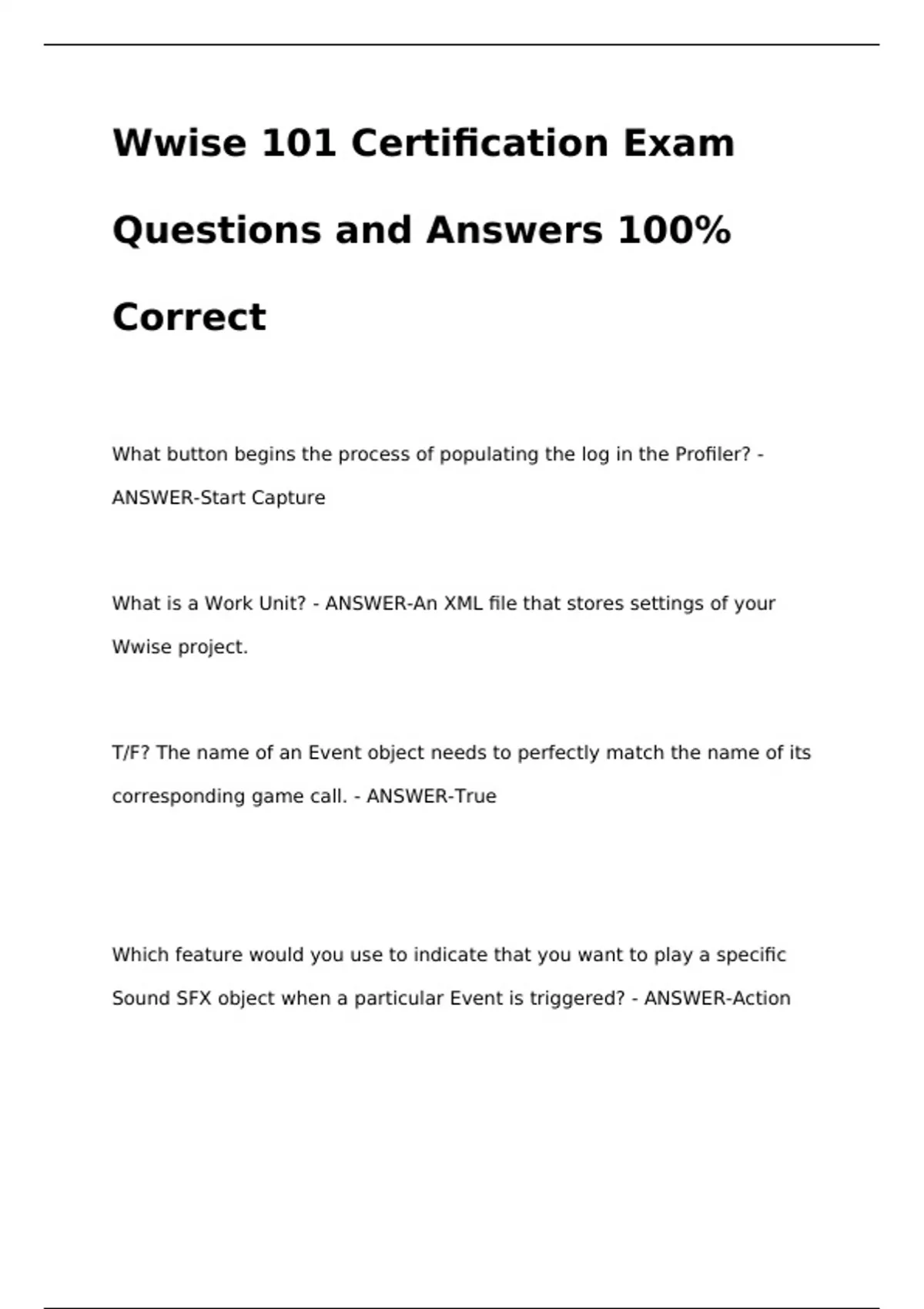 Wwise 101 Certification Exams Bundled| Questions and Answers 100% Correct