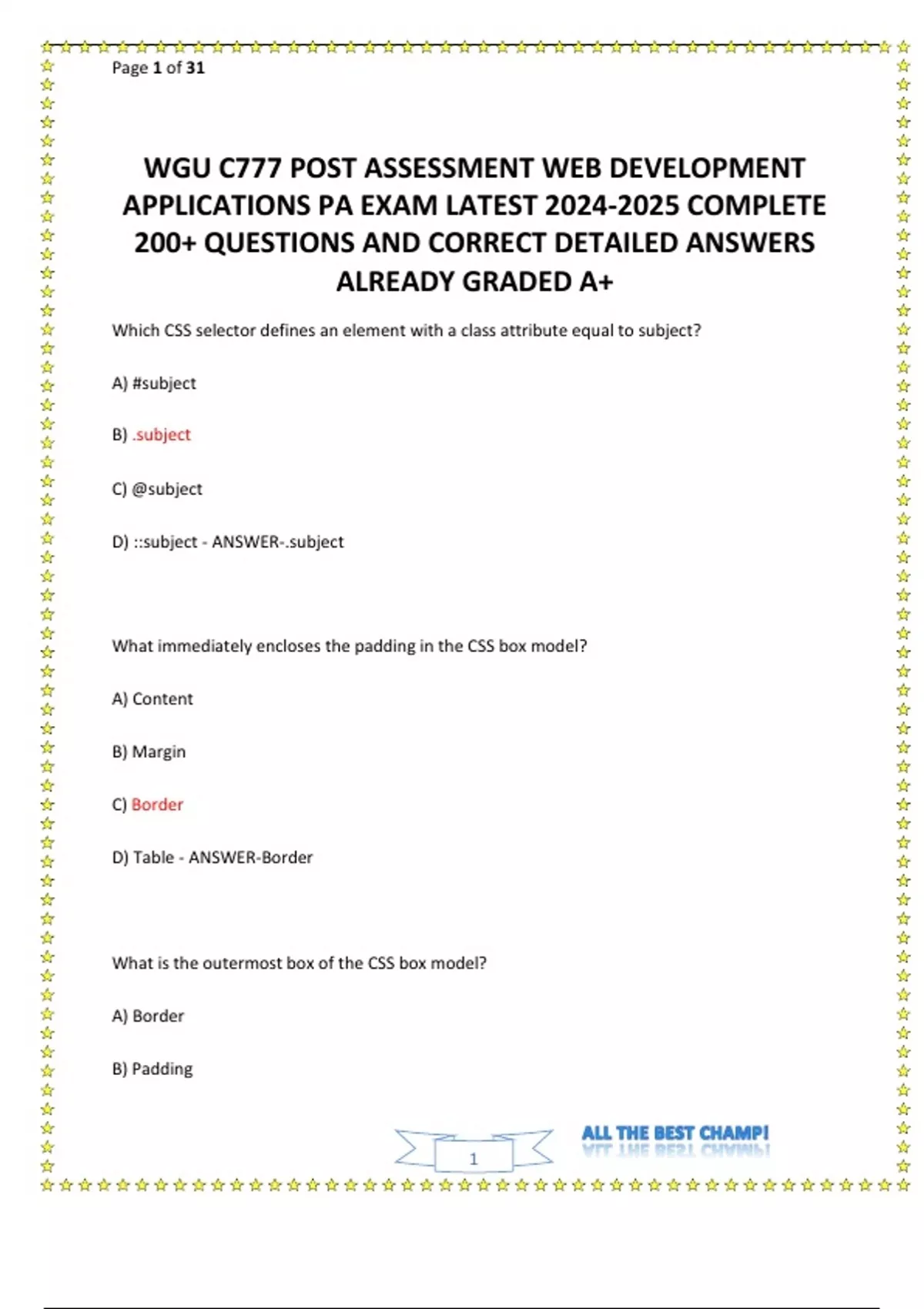WGU C777 POST ASSESSMENT WEB DEVELOPMENT APPLICATIONS -USE THIS PACKAGE TO get more DETAILED CONTENT for less!