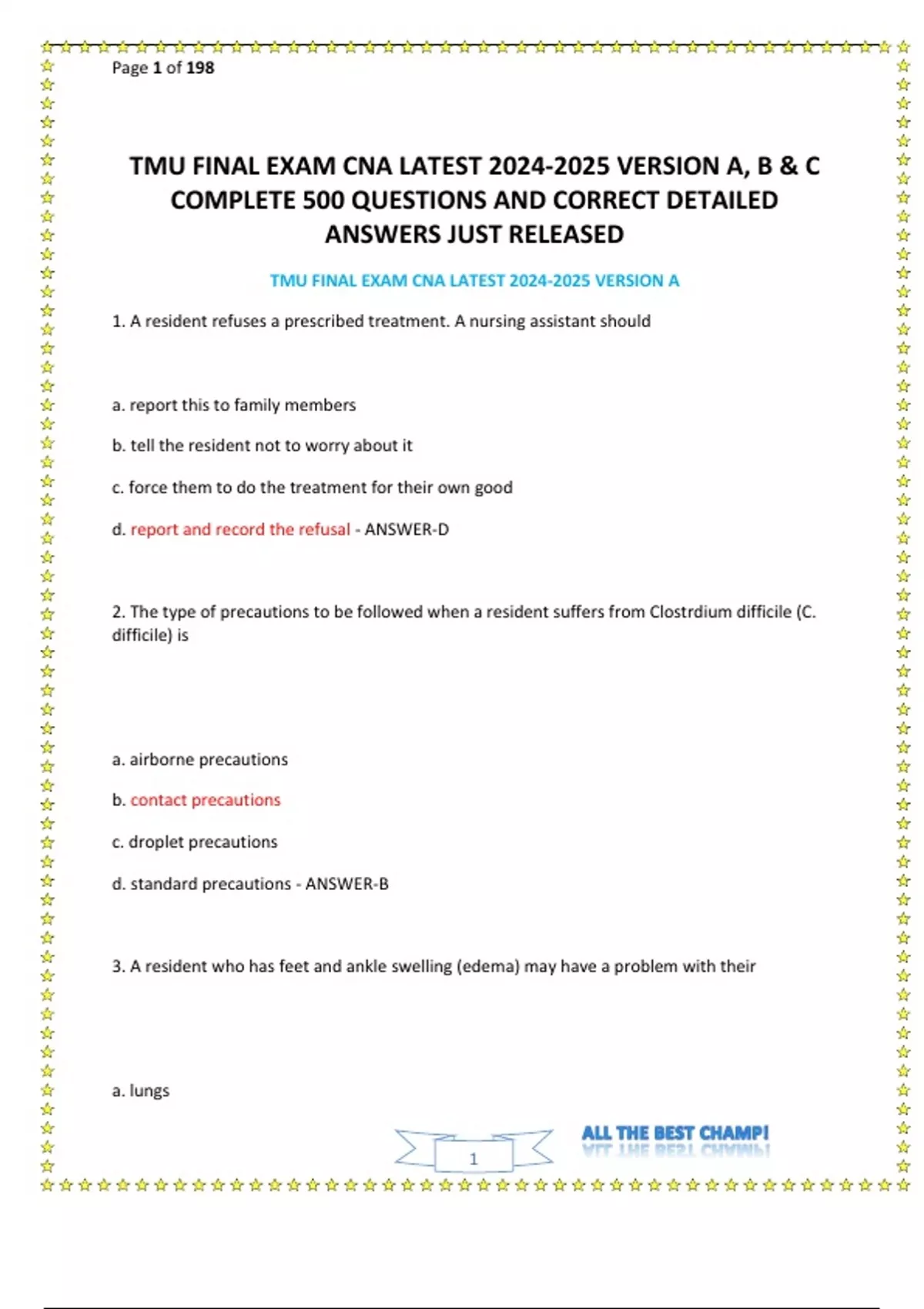 CNA FINAL EXAM--USE THIS PACKAGE TO get more DETAILED CONTENT for less!