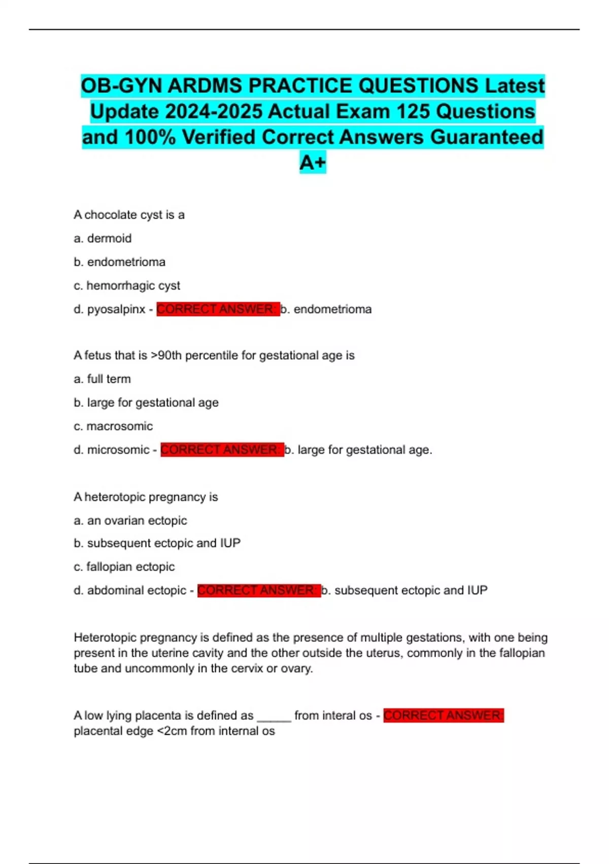 OB-GYN ARDMS PRACTICE QUESTIONS Latest Update Actual Exam 4 Versions bundled together