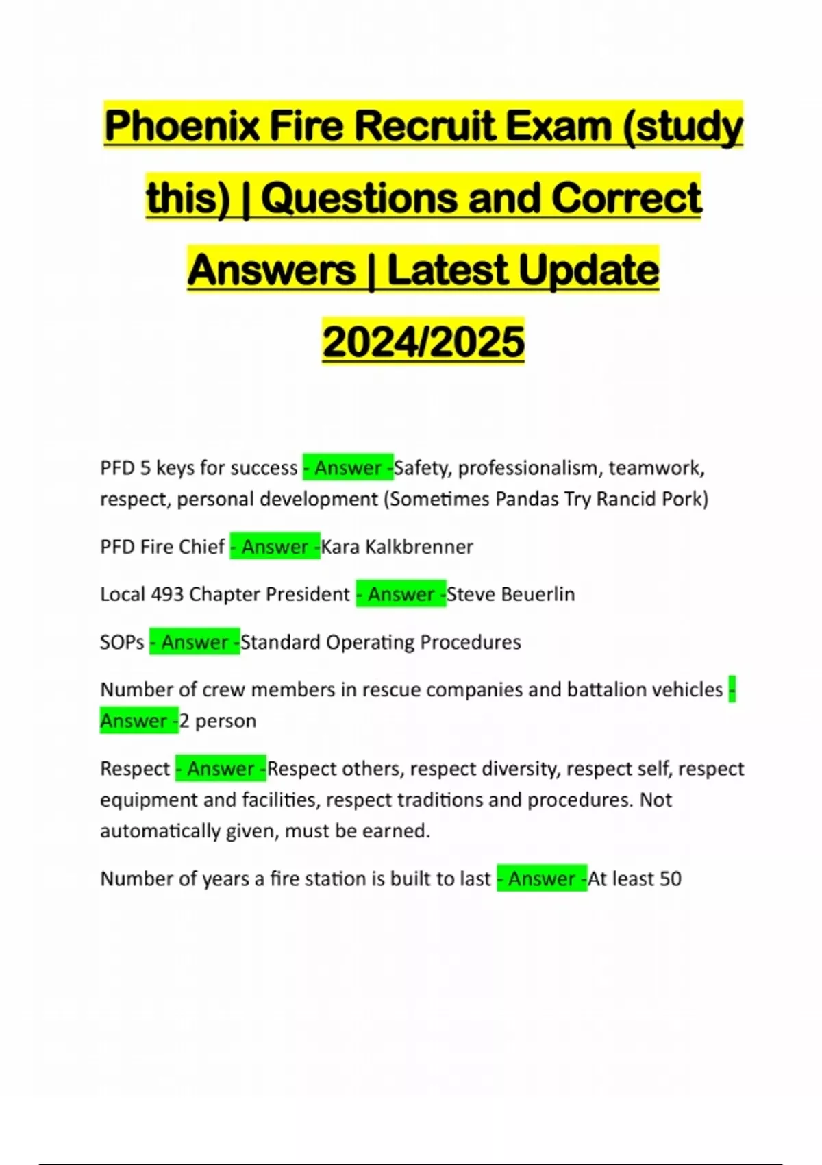 PHOENIX FIRE DEPARTMENT BUNDLED EXAMS::::: QUESTIONS AND CORRECT ANSWERS | LATEST UPDATE 2024/2025