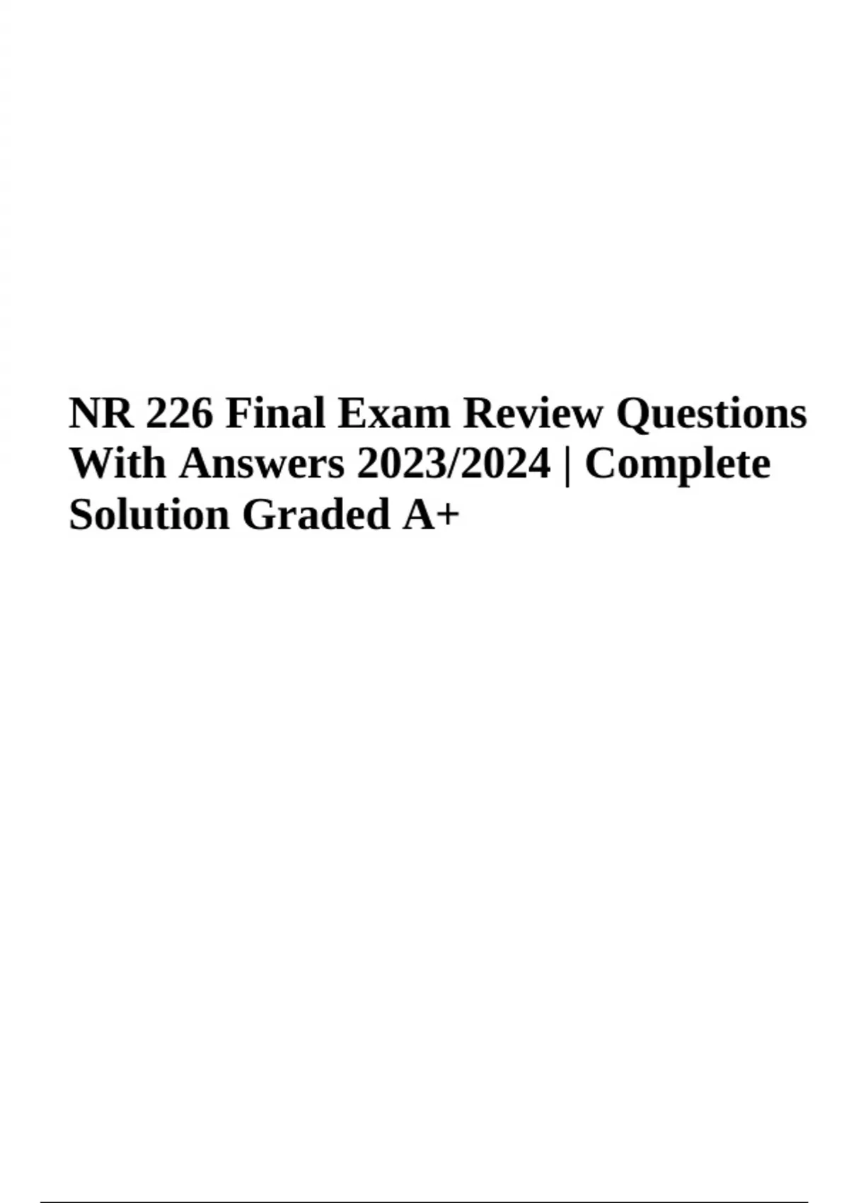 NR 226 EXAM Questions and Answers Latest Update | NR 226 Final Exam Practice Questions with Answers Latest Update 2024 & NR 226 Final Exam Questions With Correct Answers Latest (GRADED A+)