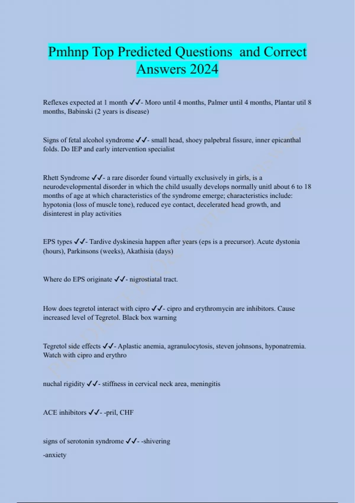 PMHNP Bundled Exam Questions and CORRECT Answers