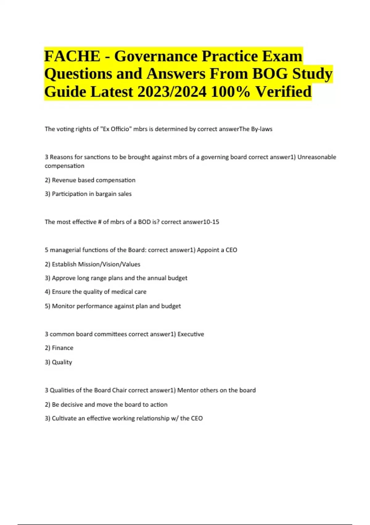 FACHE BOG Practice Exam Questions With Answers Latest 2024 | FACHE Exam Questions With 100% Correct Answers | FACHE Exam Questions and Answers | FACHE Board of Governor’s Exam Questions and Answers Latest & FACHE Board of Governor’s Exam Questions With An