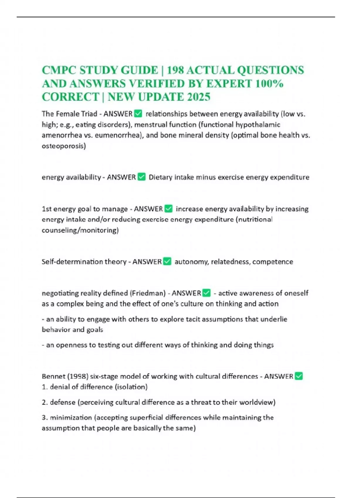 Essential Topics for CMPC Exam ACTUAL QUESTIONS AND ANSWERS VERIFIED BY EXPERT 100% CORRECT