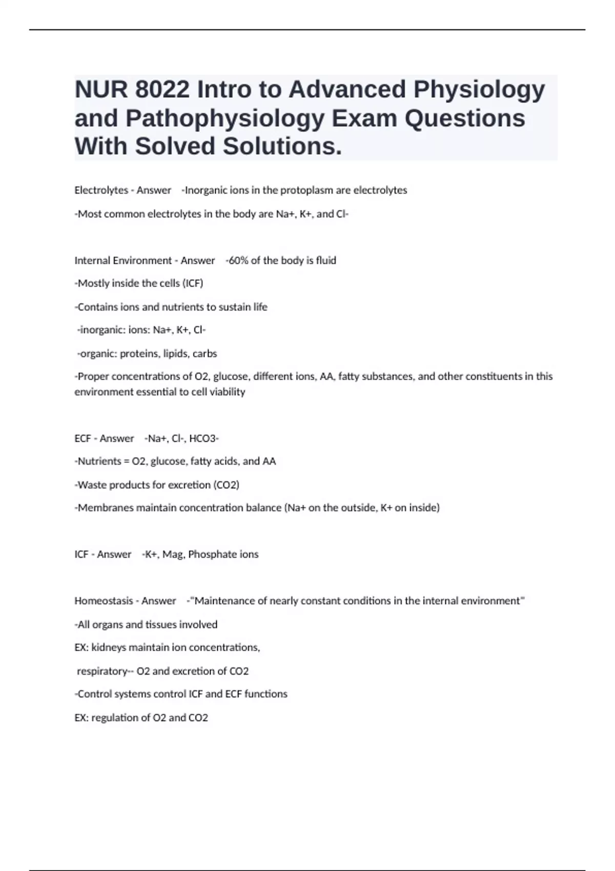 1 Exam (elaborations) Pathophysiology - Exam 2 - Hematologic Disorders Latest Questions Solved Correctly. 2 Exam (elaborations) Patho Exam 4 Practice Exam Questions With All Complete Solutions. 3 Exam (elaborations) NURS8022: Final Exam Review Questions Solved Correctly. 4 Exam (elaborations) NURS 8022 - Skin Lesions Study Questions And Already