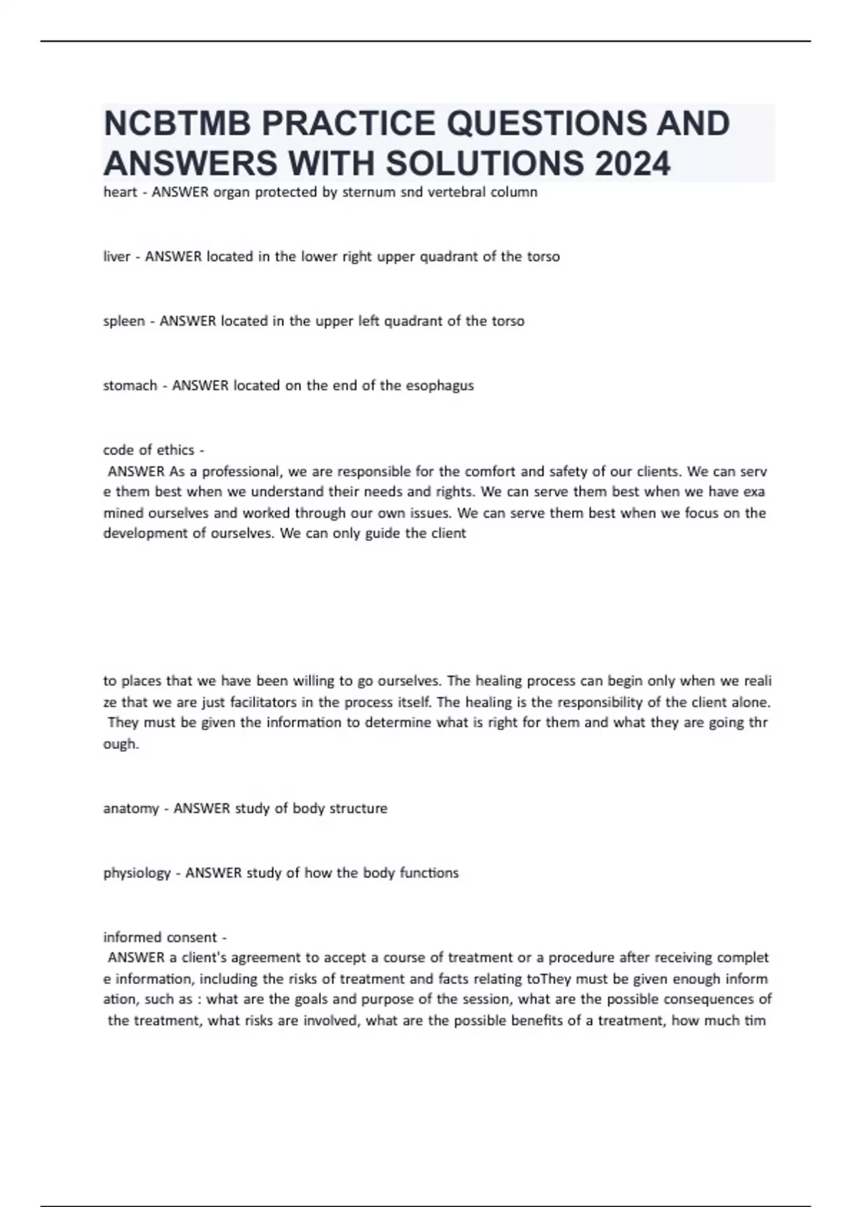 NCBTMB PACKAGE DEAL QUESTIONS AND ANSWERS WITH VERIFIED SOLUTIONS UPDATED 2024