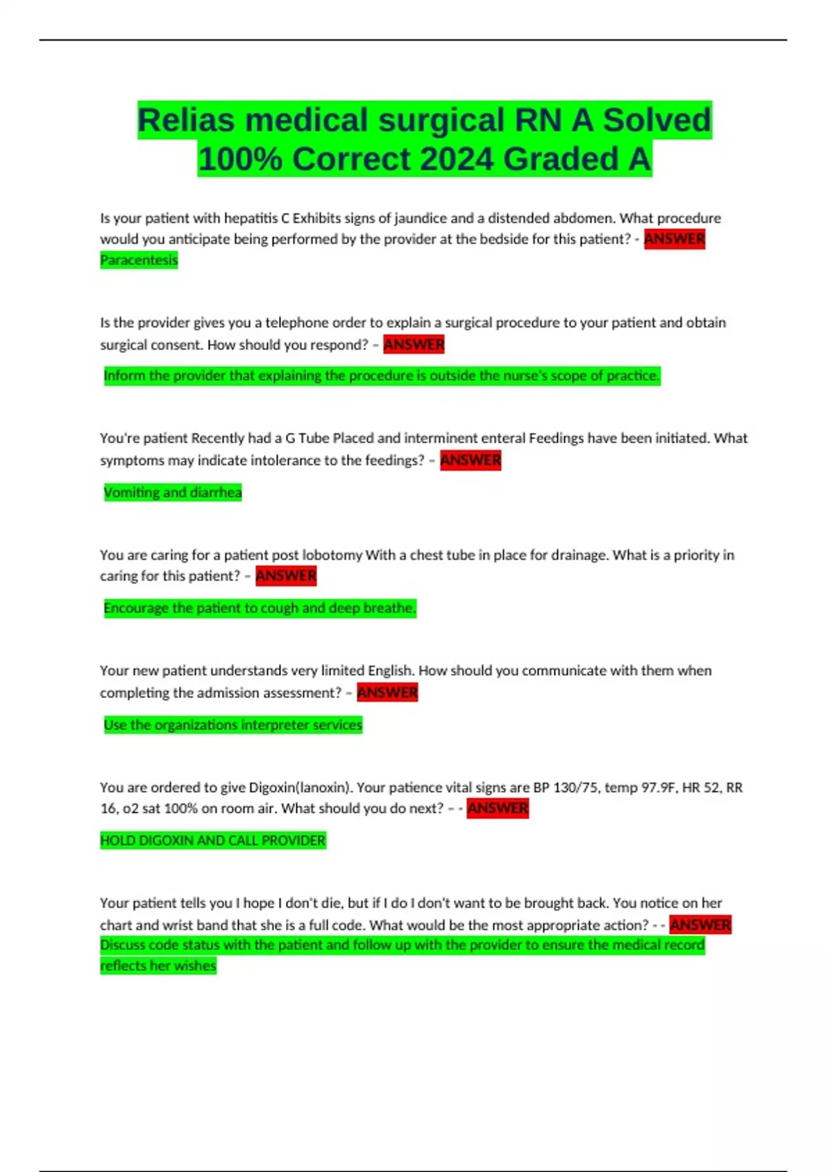Relias Dysrhythmia Basic Test 35 Questions and Answers 2024(Basic A Dysrhythmia)