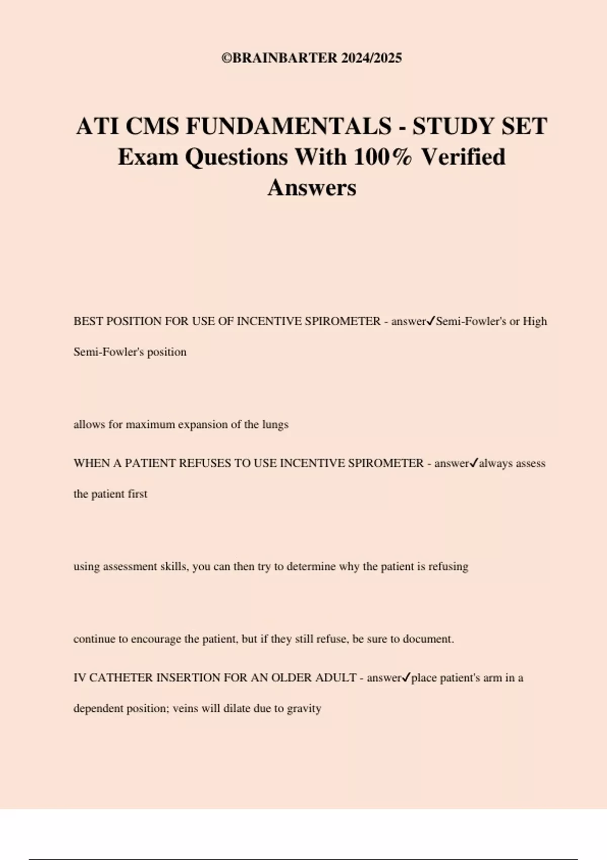 ATI CMS FUNDAMENTALS - STUDY SET Exam Questions With 100% Verified Answers