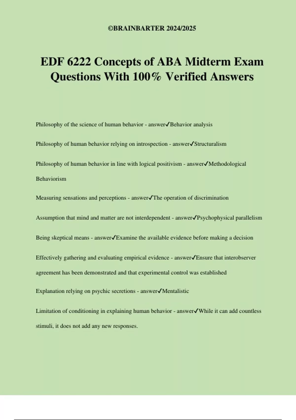EDF 6222 Concepts of ABA Midterm Exam Questions With 100% Verified Answers