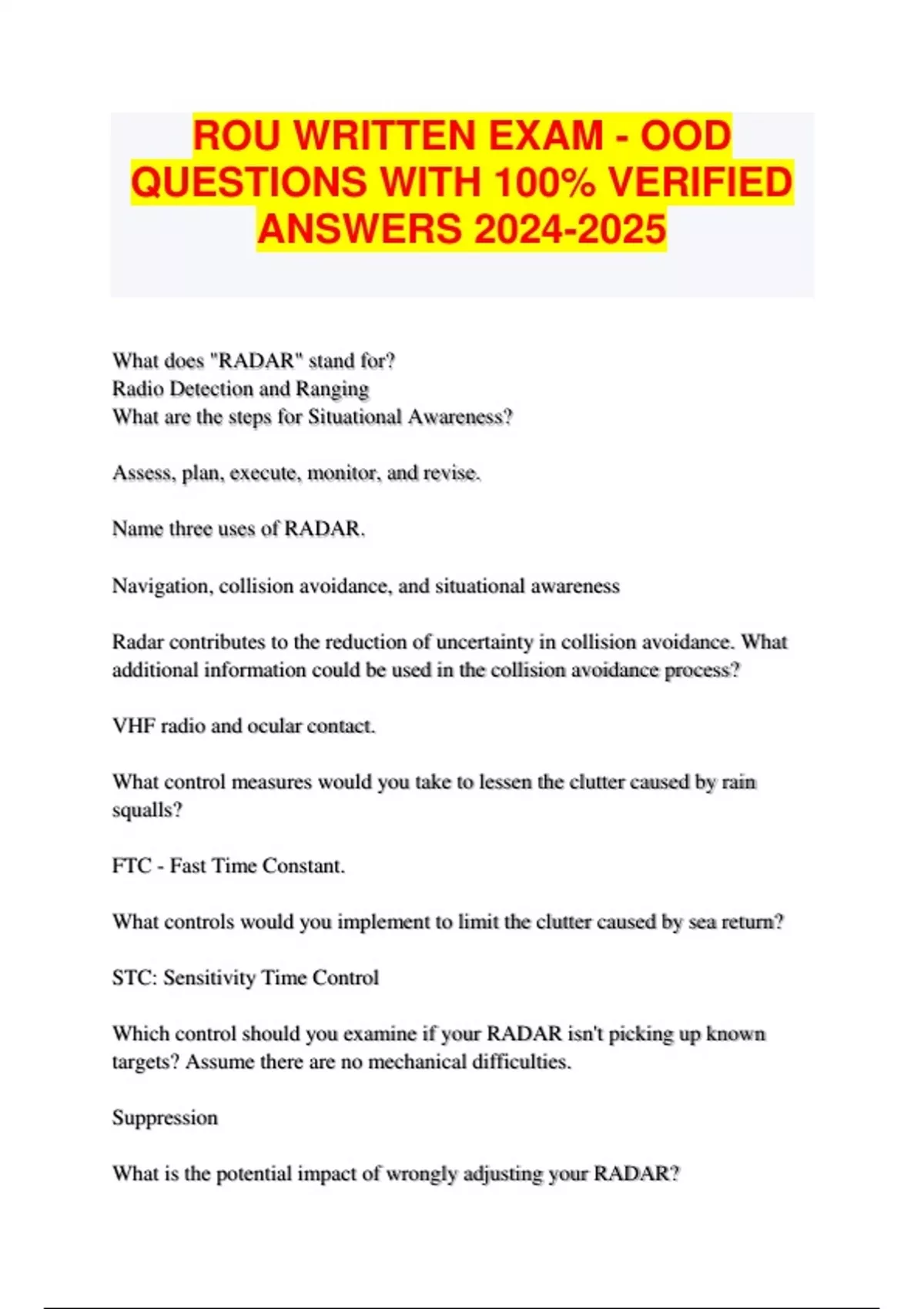 ROU EXAM QUESTIONS AND 100% VERIFIED ANSWERS