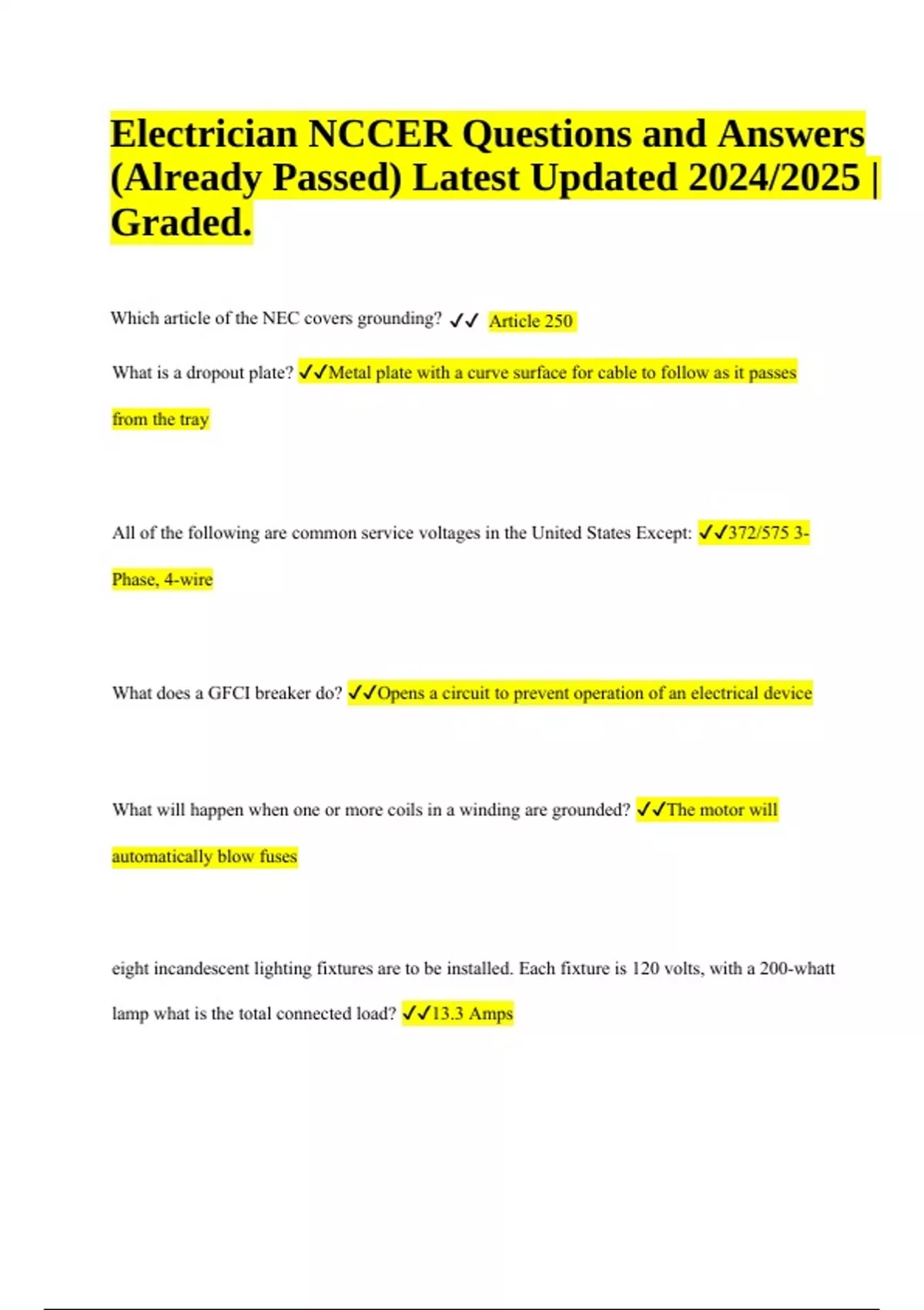 NCCER INTO TO BASIC RIGGING QUESTIONS AND ANSWERS LATEST UPDATE | NCCER study guide Module 1 Basic Safety Questions and Answers | Electrician NCCER, Exam Questions and Answers | NCCER MODULE 4 INTRO TO POWER TOOLS LATEST UPDATE & NCCER Module 4 Exam Questions and Answers 100% Correct – Latest 2024/2025.