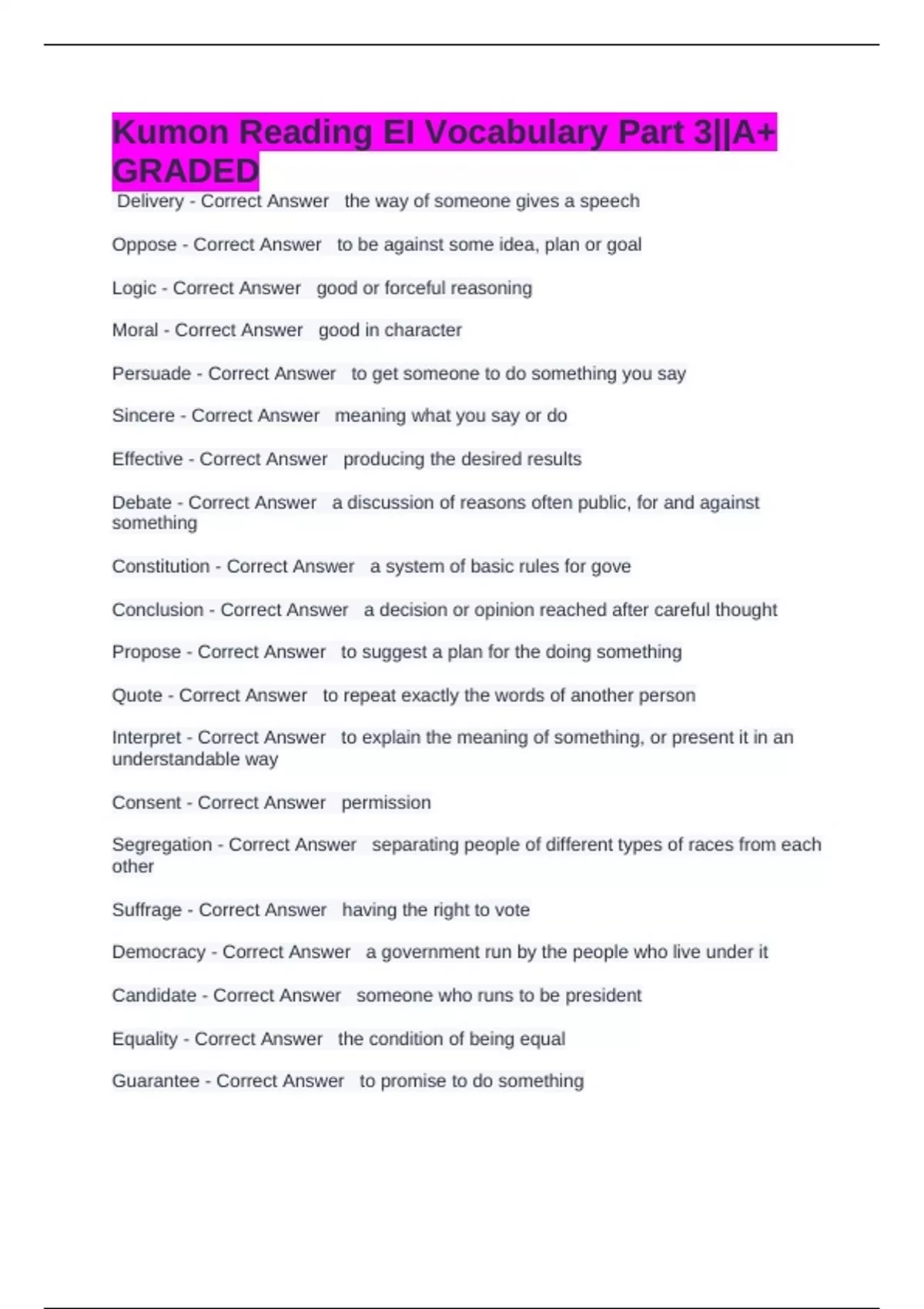 Kumon Reading EI Vocabulary Part 3||A+ GRADED,Kumon Reading EI Vocabulary Part 5 Questions And Answers || A+RATED,Kumon Reading DII Vocabulary Questions Answered And Graded,Kumon D2 QUESTIONS AND CORRECT ANSWERS,Kumon G 31-60 QUESTIONS AND QUALITY ANSWERS,Kumon G 31-60 QUESTIONS AND QUALITY ANSWERS,Kumon F2 31-60 QUESTIONS COMPLETED WITH A+ GRADED