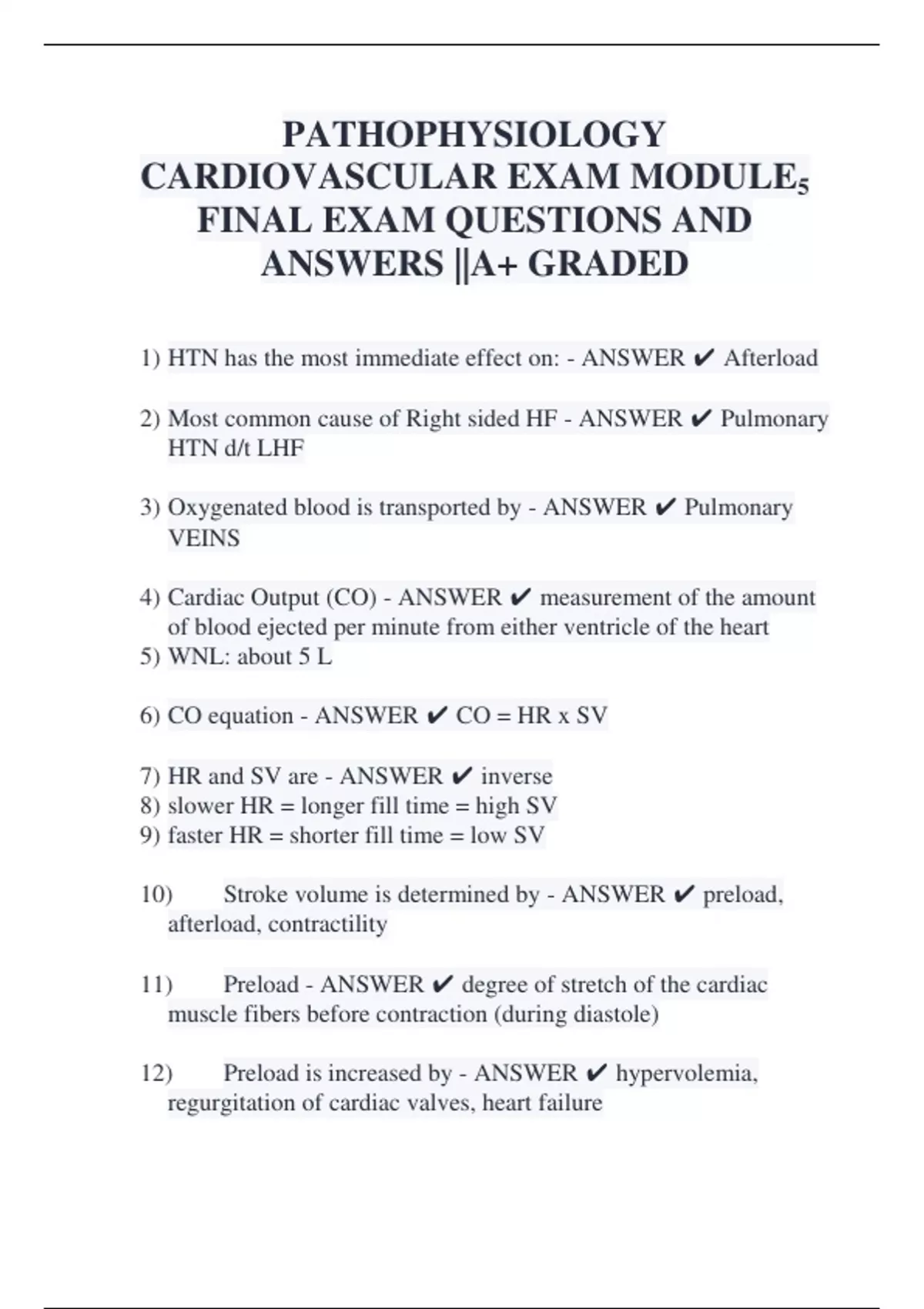 Package Deal NUR Pathophysiology: Cardiovascular all modules Final Exam 600+ QUESTIONS with Verified ANswers ||