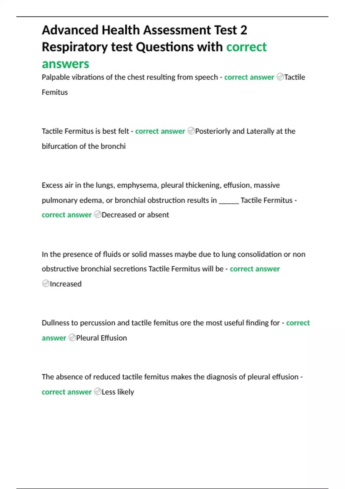 Advanced Health Assessment Test 2 Respiratory test Questions with correct answers