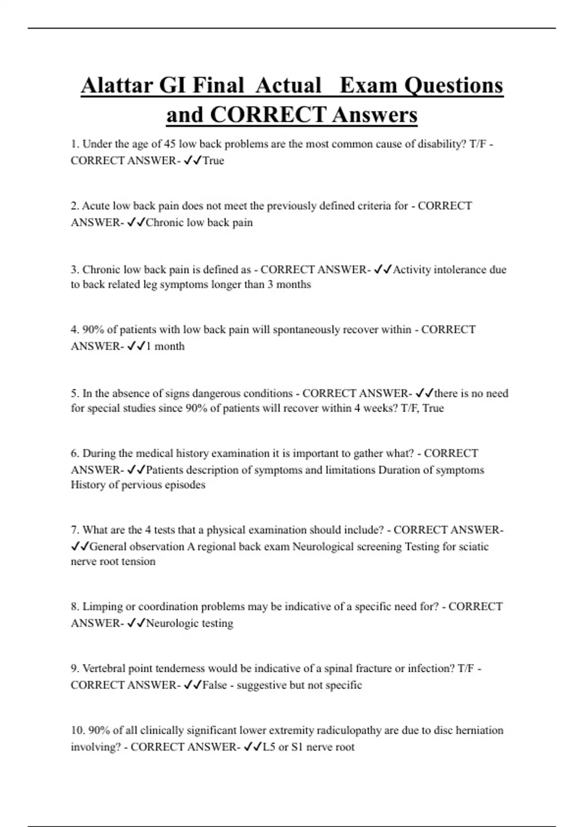 Alattar GI Bundled Exam Questions and CORRECT Answers