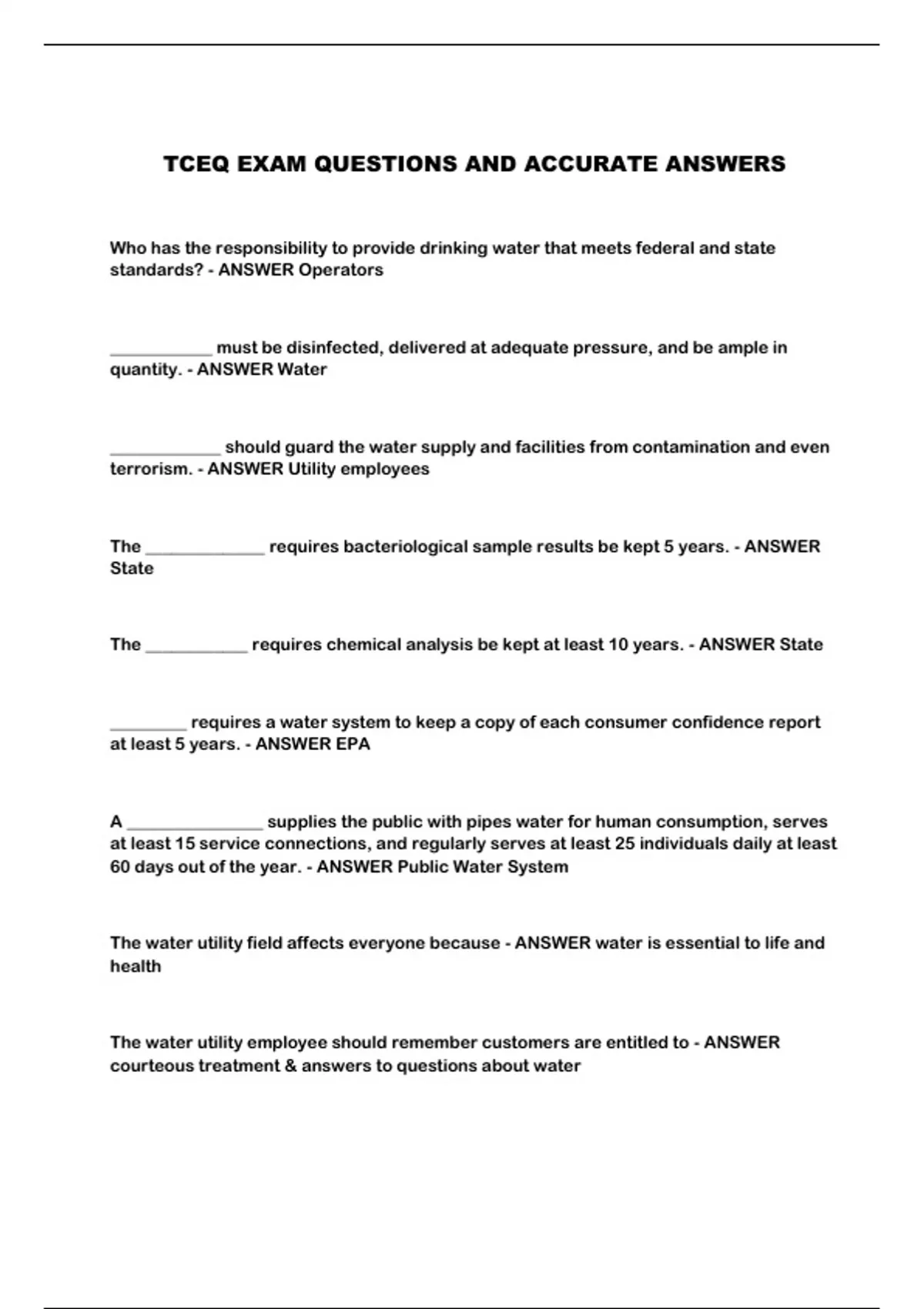 TCEQ Class C Water License Exam Questions And Correct Answers
